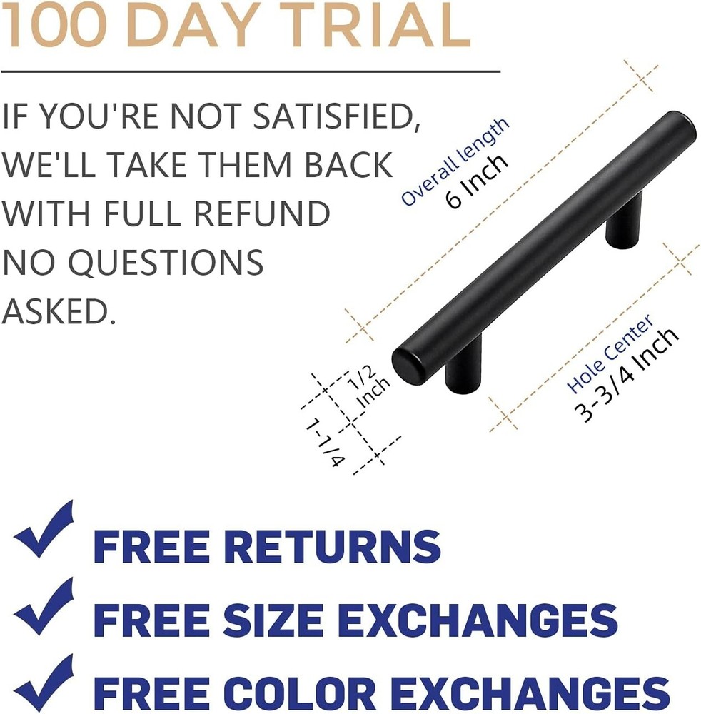 Durable 60 Pack - 6'' Matte Black Stainless Steel Pulls for Cabinets & Wardrobes ‹ › ‹ › ‹ › ‹ › ‹ › ‹ › ‹ › ‹ › ‹ › ‹ › ‹ › Durable 60 Pack - 6'' Matte Black Stainless Steel Pulls for Cabinets & Wardrobes Transform your home with our sophisticated and modern Matte Black Stainless Steel Pulls . Ideal for cabinets, wardrobes, chests, and cupboards, these pulls effortlessly enhance any space with a touch of elegance. Specifications: Hole Centers (CC): 3-3/4 inch (96mm) Total Length: 6 inch (152mm) Diameter: 1/2 inch (12mm) Projection: 1-1/4 inch (32mm) Features: Durable & Strong: Crafted from high-quality matte black stainless steel, our pulls are not only visually appealing but also built to last. Widely Compatible: Our cabinet handles blend both traditional and modern styles, ensuring compatibility with various kitchen cabinet designs. Convenient Installation: Each set includes short screws (1”) and long screws (1.57”) for hassle-free mounting. 100-Day Free Trial: We’re confident you'll love our product, and we offer a trial period to ensure your complete satisfaction. Why Choose Our Matte Black Stainless Steel Pulls? Elevate your interior décor with our elegantly crafted Matte Black Pulls, perfect for adding a contemporary touch to your cabinetry. Designed to blend seamlessly with a variety of styles, these pulls make a striking addition to any home. Their robust construction guarantees longevity and strength while maintaining a sleek appearance. Experience both beauty and functionality with our cabinet hardware. Embrace the opportunity to customize your space elegantly—order your 60 pack of Matte Black Pulls today! Shipping Free & Fast Shipping - We offer free shipping to most of the USA with a normal delivery time of 3-7 days. However, due to the current situation, additional delivery time (up to 3 weeks) may be required for some items. Alternative Carriers - We may use alternative carriers (e.g. USPS, FedEx, UPS, etc.) to ensure your package arrives safely and on time. Due to the use of multiple carriers, we are unable to provide a tracking number automatically. Handling Time - Orders are processed and shipped within 1-2 business days of receiving cleared payment. Shipping Restrictions - Shipping to Alaska, Hawaii, Puerto Rico, Guam, and other US territories may incur shipping charges or delivery restrictions. Please contact us before ordering, or your order can be refunded/cancelled. State Restrictions - There may be restrictions based on your state of purchase. For example, certain items may not be shipped to California due to state regulations. Contact for Tracking Updates - If you require tracking updates or have any concerns about the delivery of your order, please feel free to contact us, and we will be happy to assist you. Return Please see our eBay Return Policy. Thank you. Payment We accept all major credit cards, PayPal, and Apple Pay for your convenience. Your payment information is secure and encrypted to ensure a safe and seamless transaction. Please complete your payment within 3 days of purchase to avoid any delays in shipping. Feedback Your feedback is extremely important to us. We strive to provide the best products and customer service possible. If you are satisfied with your purchase, please take a moment to leave us a positive review. If you have any concerns or issues with your order, please contact us before leaving negative feedback. We are committed to resolving any problems and ensuring your satisfaction. Contact Us If you have any questions or concerns, please feel free to reach out to our customer support team. You can contact us through the eBay messaging system. We are available Monday to Friday, 9:00 am to 5:00 pm EST, and we will do our best to respond to your inquiry within 24 hours. Thank you for supporting our small family business! UPC: Not Set Unit Quantity: 6.99 Material: Stainless Steel Suitable For: Cupboard,Cabinets,Wardrobe Brand: Unbranded Type: Handle Pull Color: Black Item Length: 6 in Finish: Matte Item Diameter: 0.5 in MPN: Not Set Number in Pack: 60 Style: Modern Center-to-Center Measurement: 3.75 in Country/Region of Manufacture: Not Set Door Handing: Not Set Extension Length: Not Set Manufacturer Warranty: Not Set Unit Type: lb Fixings Supplied: Not Set