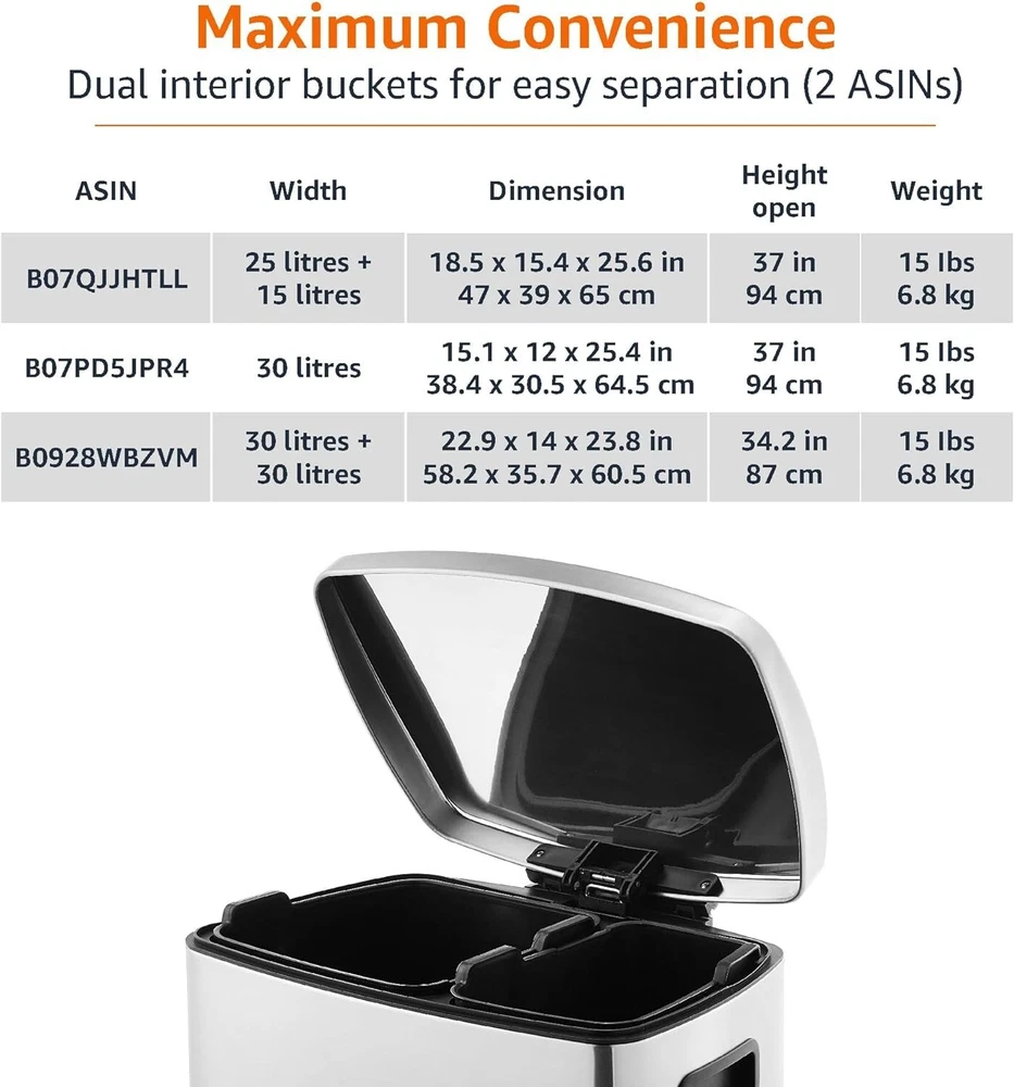 Durable 60L Rectangular Trash Can with Smudge-Proof Steel and Non-Slip Base ‹ › ‹ › ‹ › ‹ › ‹ › ‹ › ‹ › ‹ › ‹ › Durable 60L Rectangular Trash Can Transform the way you manage waste with this elegant, dual-compartment solution. Designed for both form and function, this trash can is perfect for any modern kitchen or workspace. Features: Designed with two compartments for efficient sorting of garbage and recycling. Includes interior plastic liner bins holding 7.9 gallons each, offering a total capacity of 15.9 gallons (60 liters) for maximum efficiency. Convenient handles on removable liners for effortless waste disposal. Crafted from durable stainless steel, boasting a fingerprint-proof and smudge-resistant surface that maintains its pristine appearance. Soft-close lid ensures quiet operation, minimizing disruption while extending the life of your trash can. Non-slip rubber pads at the base keep the unit securely in place on any flooring surface. Product dimensions: 22.8 x 14.2 x 23.7 inches (LxWxH) — tailored to fit seamlessly into your home or office. Benefits: Promotes environmental responsibility with dedicated compartments for waste sorting. Stainless steel aesthetics blend functionality with elegance, enhancing your space. Soft-close feature assures durability and quiet operation for peaceful living. Fun to use with convenient removable liners for easy cleaning and disposal. Stable on all types of flooring, ensuring convenience wherever it's placed. Why choose our Durable Rectangular Trash Can? Elevate your waste management experience with a trash can that doesn't compromise on style or functionality. This exquisite 60L rectangular trash can is adorned with a high-quality stainless steel exterior and features smart design elements that elevate your space while making waste disposal effortless. Enjoy hassle-free cleaning with smudge-proof materials and soft-close technology designed for longevity. Don’t settle for the ordinary; make a conscious choice for your environment and convenience. Order your 60L Rectangular Trash Can today and redefine your waste disposal experience! Shipping Free & Fast Shipping - We offer free shipping to most of the USA with a normal delivery time of 3-7 days. However, due to the current situation, additional delivery time (up to 3 weeks) may be required for some items. Alternative Carriers - We may use alternative carriers (e.g. USPS, FedEx, UPS, etc.) to ensure your package arrives safely and on time. Due to the use of multiple carriers, we are unable to provide a tracking number automatically. Handling Time - Orders are processed and shipped within 1-2 business days of receiving cleared payment. Shipping Restrictions - Shipping to Alaska, Hawaii, Puerto Rico, Guam, and other US territories may incur shipping charges or delivery restrictions. Please contact us before ordering, or your order can be refunded/cancelled. State Restrictions - There may be restrictions based on your state of purchase. For example, certain items may not be shipped to California due to state regulations. Contact for Tracking Updates - If you require tracking updates or have any concerns about the delivery of your order, please feel free to contact us, and we will be happy to assist you. Return Please see our eBay Return Policy. Thank you. Payment We accept all major credit cards, PayPal, and Apple Pay for your convenience. Your payment information is secure and encrypted to ensure a safe and seamless transaction. Please complete your payment within 3 days of purchase to avoid any delays in shipping. Feedback Your feedback is extremely important to us. We strive to provide the best products and customer service possible. If you are satisfied with your purchase, please take a moment to leave us a positive review. If you have any concerns or issues with your order, please contact us before leaving negative feedback. We are committed to resolving any problems and ensuring your satisfaction. Contact Us If you have any questions or concerns, please feel free to reach out to our customer support team. You can contact us through the eBay messaging system. We are available Monday to Friday, 9:00 am to 5:00 pm EST, and we will do our best to respond to your inquiry within 24 hours. Thank you for supporting our small family business! UPC: Not Set Unit Quantity: 60 Room: Bathroom,Bedroom,Entryway,Garage,Home Office/Study,Kitchen,Living Room,Sunroom,Utility/Laundry Room Material: Stainless Steel,PP,ABS Features: Soft-close lid,Non-slip rubber pads,Removable liner bins,Fingerprint proof,Smudge resistant Suitable For: Food Waste,General Waste,Indoor,Outdoor,Paper Waste,Plastic Waste,Vehicle Brand: Unbranded Item Height: Dual Compartment Trash Can Item Length: Dual Compartment Trash Can Item Width: Dual Compartment Trash Can Type: Recycling Bin Color: Grey Capacity: 60 Liters Size: Large Number of Compartments: 2 Model: Not Set Item Weight: 18 lb MPN: Not Set Shape: Rectangle Style: Modern Pattern: Not Set Country/Region of Manufacture: Not Set Finish: Stainless Steel Unit Type: Unit Personalize: Not Set