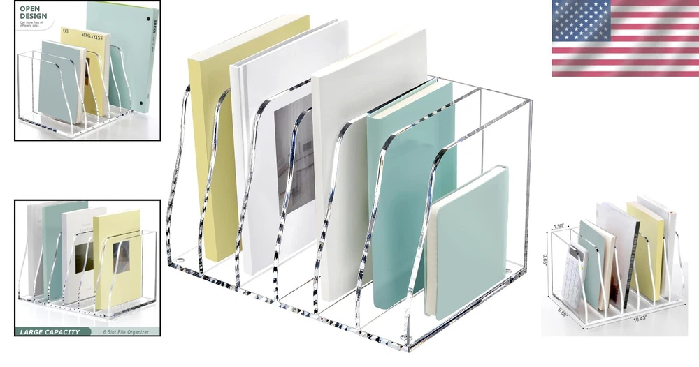 Durable 6-Slot Clear Acrylic File Organizer for Effortless Workspace Arrangement