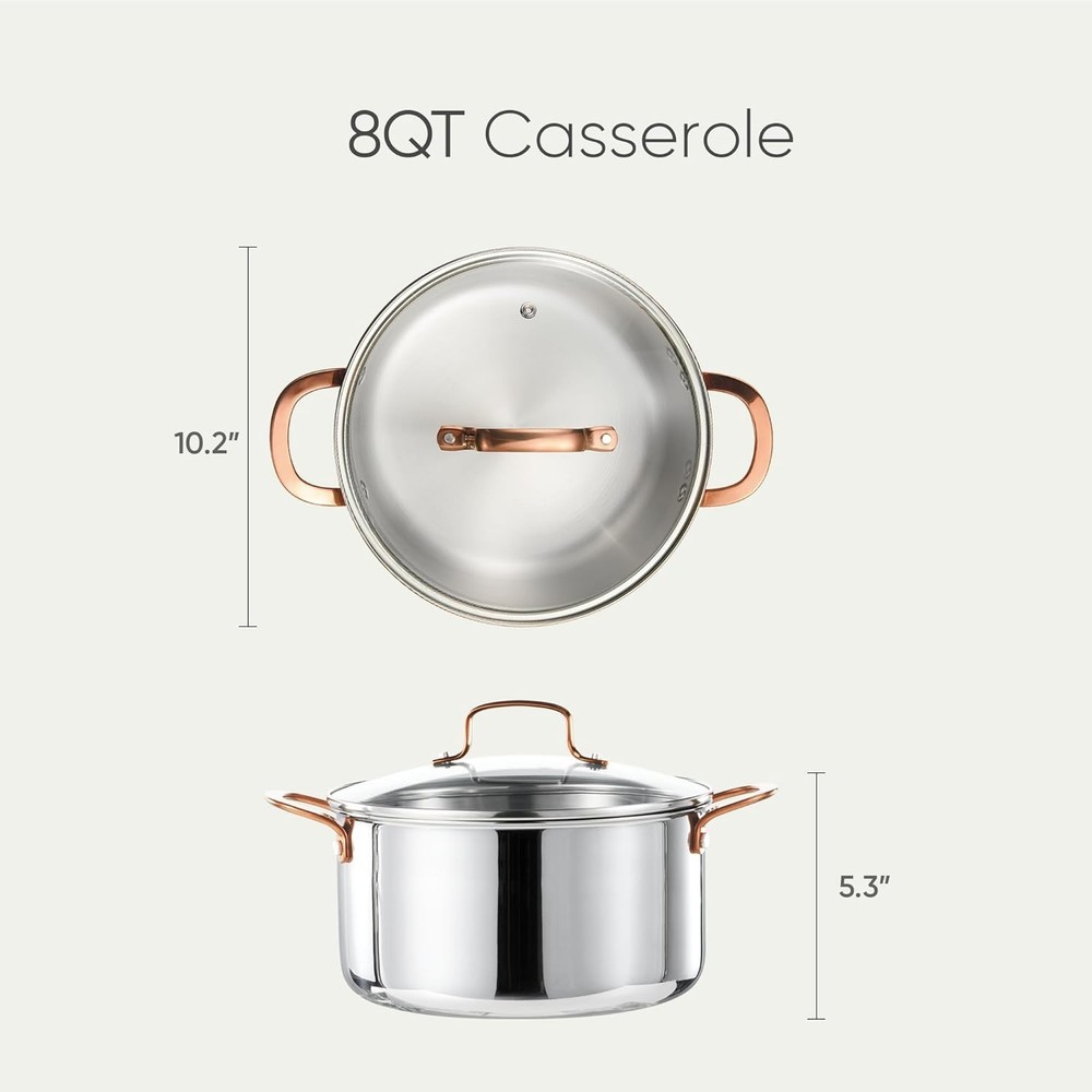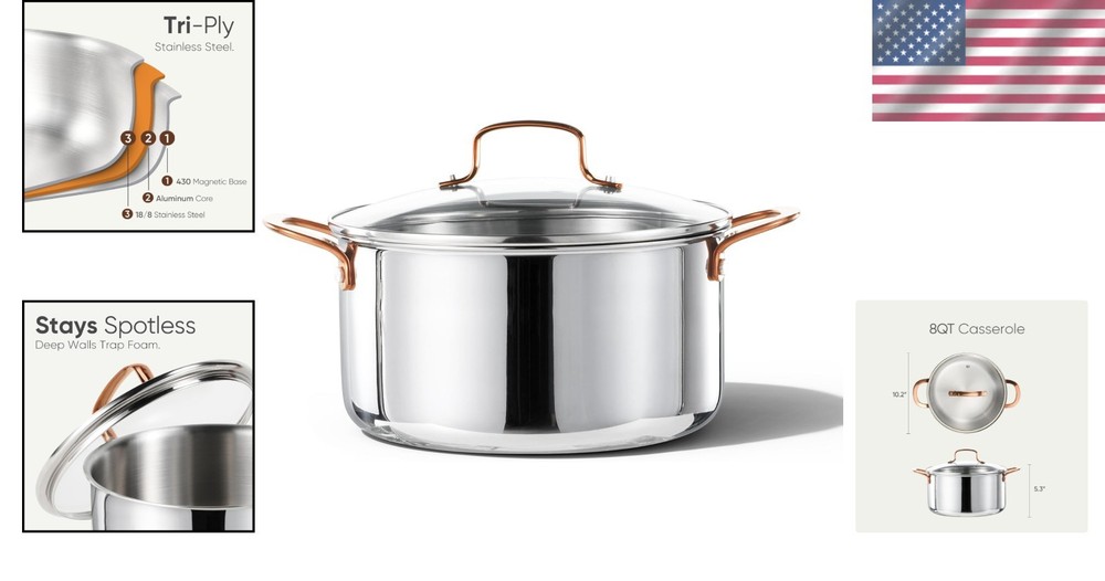 Durable 8 Qt Tri-Ply Stockpot - Oven Safe, Induction and Dishwasher Friendly ‹ › ‹ › ‹ › ‹ › ‹ › ‹ › ‹ › ‹ › ‹ › Durable 8 Qt Tri-Ply Stockpot -Oven Safe, Induction and Dishwasher Friendly Features: 3-Ply construction provides unmatched durability and heat efficiency. Rapid boiling and even heating with 360° cladding that circulates heat evenly. Two loop handles for easy lifting, and an angled rim for controlled pouring. See-through glass lid allows for quick monitoring of cooking while retaining moisture and flavor. Brushed stainless finish that’s easy to maintain and wipe clean. Flared edge that prevents drips for a cleaner countertop. Oven safe and compatible with all stovetops, including induction. Dishes clean up effortlessly in the dishwasher. Benefits: Experience rapid cooking with superior heat distribution, perfect for sauces, stocks, and more. Simplify your cooking experience with easy lift handles and controlled pouring. Enjoy hassle-free cleanup with dishwasher-safe convenience. Meld contemporary design with functionality for an exquisite cooking experience. Peace of mind with dedicated customer support ready to assist you anytime. Why choose our Tri-Ply Stockpot? Transform your culinary adventures with the Durable 8 Qt Tri-Ply Stockpot, designed for the discerning cook who values both quality and convenience. Its tri-ply construction ensures quick boiling and steady heat retention, while the brushed stainless finish enhances its sleek design and makes cleanup effortless. The ergonomically designed handles and controlled pour rim allow for seamless cooking and serving. With its ability to transition from stovetop to oven with grace, and compatibility with all types of cooktops, this stockpot is not just a kitchen tool but a testament to everyday elegance. Make this essential piece a staple in your home and elevate your cooking today! Shipping Free & Fast Shipping - We offer free shipping to most of the USA with a normal delivery time of 3-7 days. However, due to the current situation, additional delivery time (up to 3 weeks) may be required for some items. Alternative Carriers - We may use alternative carriers (e.g. USPS, FedEx, UPS, etc.) to ensure your package arrives safely and on time. Due to the use of multiple carriers, we are unable to provide a tracking number automatically. Handling Time - Orders are processed and shipped within 1-2 business days of receiving cleared payment. Shipping Restrictions - Shipping to Alaska, Hawaii, Puerto Rico, Guam, and other US territories may incur shipping charges or delivery restrictions. Please contact us before ordering, or your order can be refunded/cancelled. State Restrictions - There may be restrictions based on your state of purchase. For example, certain items may not be shipped to California due to state regulations. Contact for Tracking Updates - If you require tracking updates or have any concerns about the delivery of your order, please feel free to contact us, and we will be happy to assist you. Return 30-Day Hassle-Free Returns - We want you to be completely satisfied with your purchase. If you are not, you can return the item within 30 days of receiving it for a full refund or exchange. Easy Return Process - To start a return, simply contact us and we will provide you with a prepaid return shipping label and detailed instructions. Restocking Fee - There are no restocking fees for returns. However, the buyer is responsible for return shipping costs if the return is not due to a seller's error. Refund Processing Time - Refunds will be processed within 5 business days of receiving the returned item in its condition. Payment We accept all major credit cards, PayPal, and Apple Pay for your convenience. Your payment information is secure and encrypted to ensure a safe and seamless transaction. Please complete your payment within 3 days of purchase to avoid any delays in shipping. Feedback Your feedback is extremely important to us. We strive to provide the best products and customer service possible. If you are satisfied with your purchase, please take a moment to leave us a positive review. If you have any concerns or issues with your order, please contact us before leaving negative feedback. We are committed to resolving any problems and ensuring your satisfaction. Contact Us If you have any questions or concerns, please feel free to out to our customer support team. You can contact us through the eBay messaging system. We are available Monday to Friday, 9:00 am to 5:00 pm EST, and we will do our best to respond to your inquiry within 24 hours. Buy it now and enjoy a pleasant shopping experience! Unit Quantity: 1.0 Stove Type Compatibility: Gas,Induction,Ceramic Material: Stainless Steel Set Includes: Lid Features: Dishwasher Safe,Easy to Clean,Oven-Safe,With Lid Type of Oven: Electric,Gas,Induction Surface Coating: Stainless Steel Capacity: 8 qt Type: Stockpot Color: Silver Item Diameter: 10 in Shape: Round Item Depth: 5.7 in Number of Items in Set: One-Piece Item Weight: 3.23 kg Heat Resistance: Up to 300°C