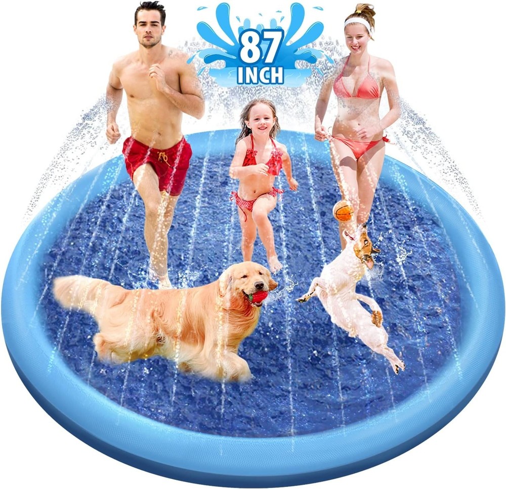 Blue 75in Dog Splash Pad - Perfect Anti-Slip Summer Fun for Pets & Kids