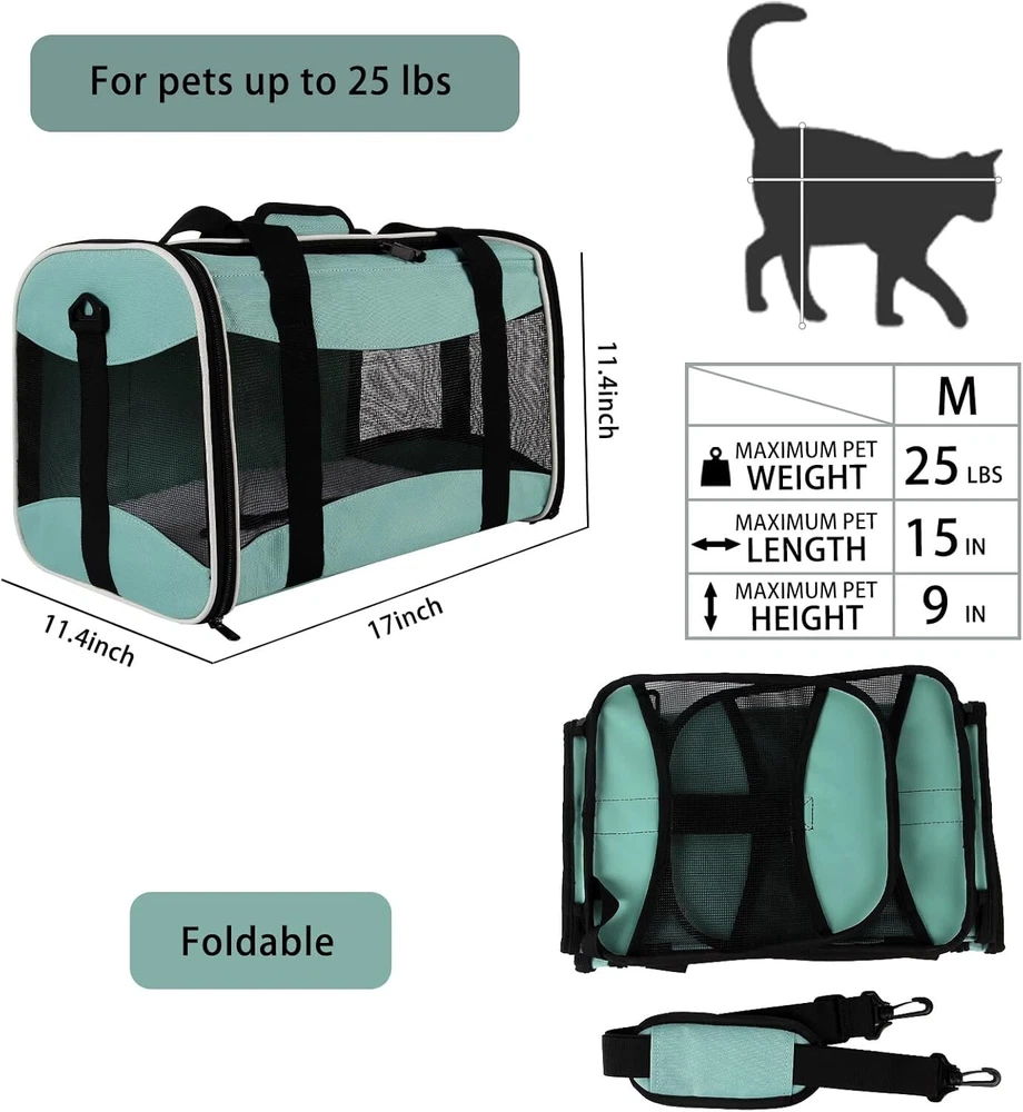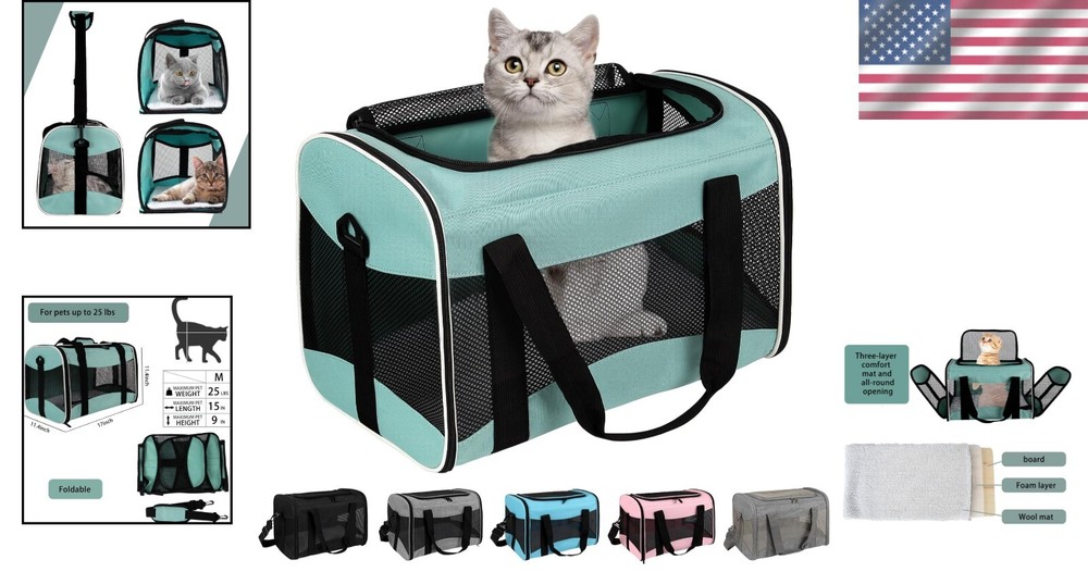 Durable Airline Approved Pet Carrier - Collapsible Bag for Cats & Small Dogs < class="slides"> ‹ › ‹ › ‹ › ‹ › ‹ › ‹ › ‹ › ‹ › ‹ › ‹ › Durable Airline Approved Pet Carrier -Collapsible Bag for Cats & Small Dogs Product Dimensions: Size: 17x11x11 inches Recommended for pets up to 15 lbs Ideal for large, medium cats and small dogs Features: Airline Approved: Designed to fit comfortably under most flight seats, allowing you to travel anywhere with your beloved pet. Excellent Material: Crafted from durable polyester fabric supported by a steel ring, it is washable and wear-resistant. Breathable Design: Features nylon mesh on three sides and the top for ventilation and visibility. Safe and Comfortable: Equipped with metal zippers, an anti-escape safety buckle, dual harness options, and easy access for your pet to enter and exit. Portable and Foldable: Comes with a detachable, washable wool pet bed for comfort and an adjustable shoulder strap for easy carrying. Folds flat for convenient storage when not in use. Benefits: Spacious interior allows for comfort during travel. Safe transport with secure zippers and an anti-escape design. Washable materials ensure cleanliness and hygiene for your pet. Lightweight and portable, making it perfect for trips, hikes, and camping. Why choose our Durable Airline Approved Pet Carrier? Traveling with pets should be a joy, not a hassle. Our Durable Airline Approved Pet Carrier combines style, safety, and convenience, allowing you to take your furry friend along for the journey. With spacious interiors and breathable materials, this carrier is designed for both comfort and confidence, making it the ultimate choice for pet owners on the go. Don’t leave your beloved companion behind—embrace adventure with our pet carrier today! Shipping Free & Fast Shipping - We offer free shipping to most of the USA with a normal delivery time of 3-7 days. However, due to the current situation, additional delivery time (up to 3 weeks) may be required for some items. Alternative Carriers - We may use alternative carriers (e.g. USPS, FedEx, UPS, etc.) to ensure your package arrives safely and on time. Due to the use of multiple carriers, we are unable to provide a tracking number automatically. Handling Time - Orders are processed and shipped within 1-2 business days of receiving cleared payment. Shipping Restrictions - Shipping to Alaska, Hawaii, Puerto Rico, Guam, and other US territories may incur shipping charges or delivery restrictions. Please contact us before ordering, or your order can be refunded/cancelled. State Restrictions - There may be restrictions based on your state of purchase. For example, certain items may not be shipped to California due to state regulations. Contact for Tracking Updates - If you require tracking updates or have any concerns about the delivery of your order, please feel free to contact us, and we will be happy to assist you. Return 30-Day Hassle-Free Returns - We want you to be completely satisfied with your purchase. If you are not, you can return the item within 30 days of receiving it for a full refund or exchange. Easy Return Process - To start a return, simply contact us and we will provide you with a prepaid return shipping label and detailed instructions. Restocking Fee - There are no restocking fees for returns. However, the buyer is responsible for return shipping costs if the return is not due to a seller's error. Refund Processing Time - Refunds will be processed within 5 business days of receiving the returned item in its condition. Payment We accept all major credit cards, PayPal, and Apple Pay for your convenience. Your payment information is secure and encrypted to ensure a safe and seamless transaction. Please complete your payment within 3 days of purchase to avoid any delays in shipping. Feedback Your feedback is extremely important to us. We strive to provide the best products and customer service possible. If you are satisfied with your purchase, please take a moment to leave us a positive review. If you have any concerns or issues with your order, please contact us before leaving negative feedback. We are committed to resolving any problems and ensuring your satisfaction. Contact Us If you have any questions or concerns, please feel free to out to our customer support team. You can contact us through the eBay messaging system. We are available Monday to Friday, 9:00 am to 5:00 pm EST, and we will do our best to respond to your inquiry within 24 hours. Buy it now and enjoy a pleasant shopping experience! Unit Quantity: 15 Type: Soft-Sided Travel Crate Dog Size: M Dog Breed: Small Material: Polyester Unit Type: Unit