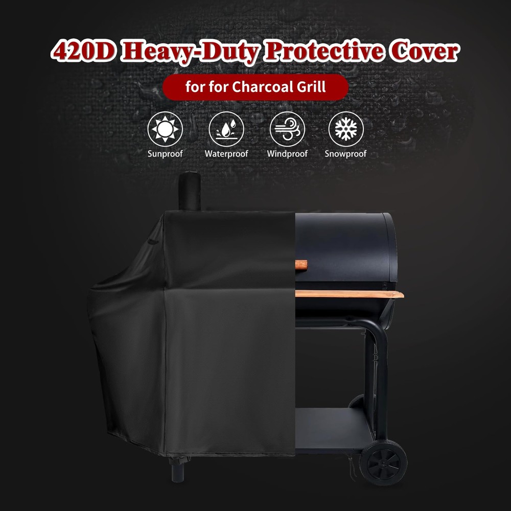 High Quality Waterproof Material: our charcoal grill cover is made of high quality 420d oxford fabric and waterproof pvc coating, which is windproof, dustproof, uv resistant, waterproof and tear and cold crack resistant, in addition to preventing the grill from deteriorating and keeping it safe and dry. Compatible: Designed for royal gourmet cc1830w 30/cc1830s 30"/cc1830sc charcoal grills. also suitable for other similar sized grills. the barbecue grill cover measures l 54.3“ x w 28.7” x h 45.3”. please measure your outdoor grill dimensions before purchase! Adjustable Draw Ropper And Buckle Design: Elastic cord for a snug fit, adjustable drawstring and buckle strap underneath the cover, you just need to fasten the buckle and tighten the hem cord, it will be tightly secured to the charcoal grill, preventing it from being blown away in windy weather. Powerful Protection: Provides strong protection from any weather (snow, hail, rain, wind, etc.). with our grill cover, you can rest assured that your charcoal grill will last longer by placing it by the pool or in the yard to extend the life of your grill. Easy To Clean: The grill cover can not be washed in a washing machine, just use water or wipe it clean with a rag to rinse it, the dirt will be gone soon, dry the grill cover in the sun, please cover the charcoal grill after it cools down and keep it away from fire sources.