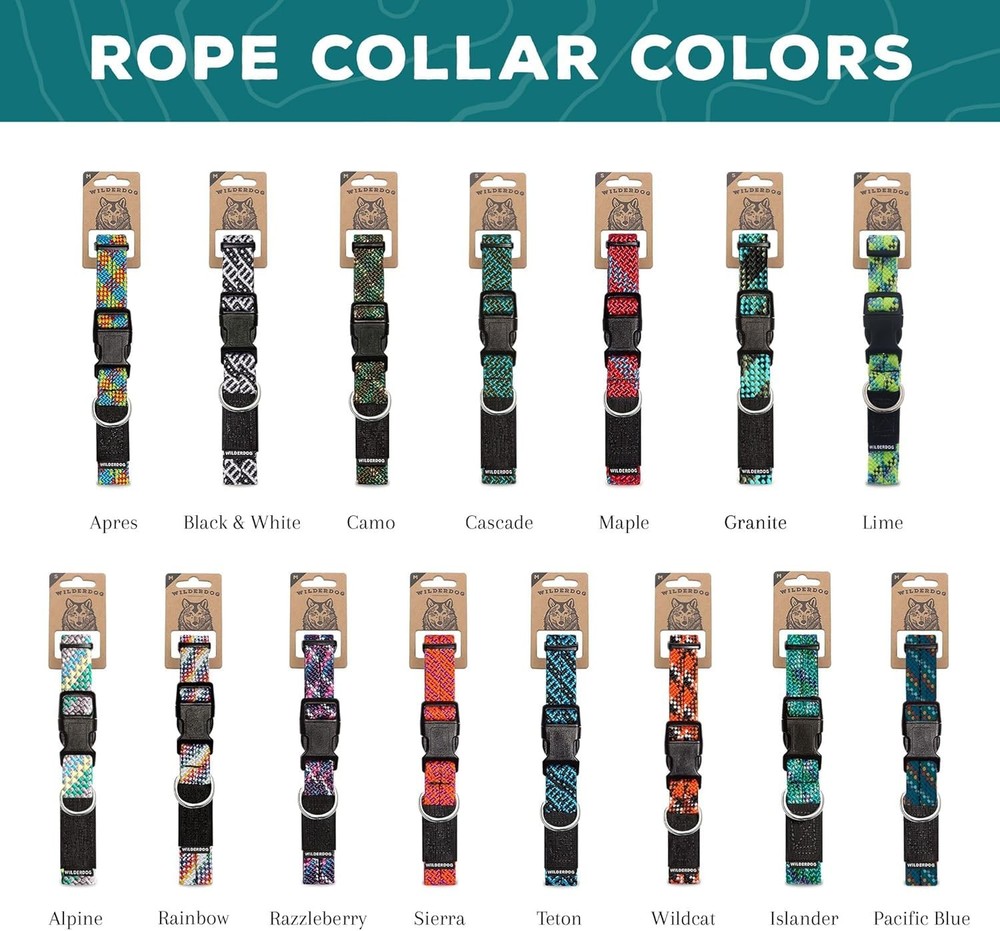 Super durable rope dog collar backed by a lifetime warranty of adventures – never buy another collar again! Your dog doesn’t mess around when it comes to exploring, and neither should their gear. Made with durable rock climbing rope trusted by climbers and heavy-duty hardware - you’ll have the strongest collar out there. Perfect with any of our matching rope dog leashes, these adjustable dog collars are available in Small (10" - 14" with a 3/4" band), Medium (13" - 18" with a 1" band) & Large (16" - 24" with a 1" band). For the most accurate size, measure around your dog's neck where the collar would sit, leaving room to slide at least 2 fingers under the collar. If your dog is between sizes, we recommend the medium. Made with tightly spun, polypropylene/polyester rope and a heavy-duty plastic clip with nickel-plated, steel D-Ring. From dog leashes, dog collars & dog harnesses to sleeping bags, water bowls & everything in between, we've got dog essentials & gear for camping, backpacking, hiking, or just walking around the block. makes high-quality, long-lasting dog gear, dog apparel & dog accessories designed to ensure you & your best friend are equipped for good times & great adventures in the great outdoors.