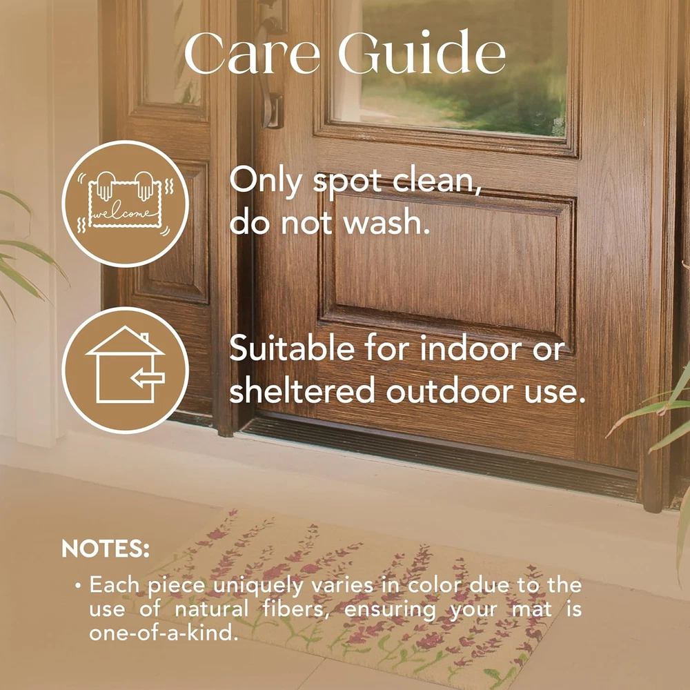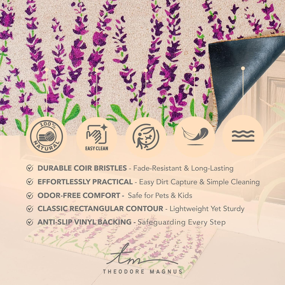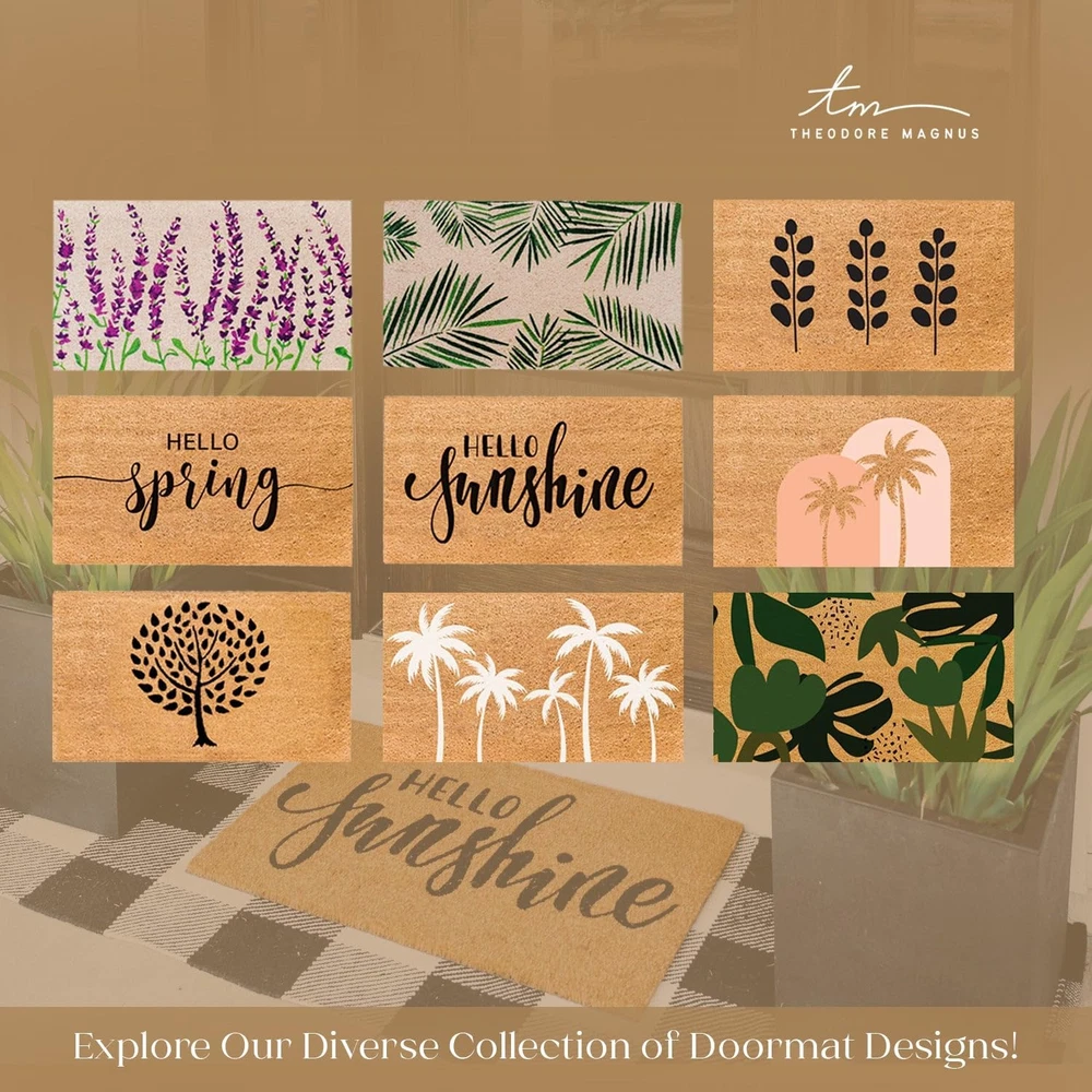 Store New Arrivals Add to Favorite View Feedback Contact Spring Door Mat – Coir Doormat for Outdoor Entrance, Durable Welcome Mat with Non-Slip Backing, Perfect for Front Door and Entryway - Outdoor/Indoor - Wildflowers Description Item model number COIR-1730-15-141 Style Decor Weave Type Tufted Pattern Letter Print Country of Origin India Is Stain Resistant Yes Theme Coconut Number of Pieces 1 Room Type Hallway Material Natural Fibers Model Name CDM Rug Form Type Doormat Indoor/Outdoor Usage Both Water Resistance Level Water Resistant Item Weight 4 Pounds Pile Height Low Pile Construction Type Handmade Special Feature Non-slip Backing Color Wildflowers Shape Rectangular Back Material Type Rubber Product Dimensions 30"L x 17"W Size 17" x 30" OUR PROMISE - We strive to make quality products responsibly and offer a worry-free buying experience with easy returns. We even pay for return shipping, so you can shop confidently, knowing satisfaction is guaranteed. Product Description Spring at Your Doorstep: Freshness in Every Step! The video showcases the product in use. The video guides you through product setup. The video compares multiple products. The video shows the product being unpacked. Embrace the rejuvenating spirit of spring with our coir mats, designed to bring the season’s vitality right to your entrance. Crafted from natural materials for durability and easy maintenance, these mats not only welcome your guests but also infuse your home with spring’s optimistic energy. Step into a World of Style , Comfort , and Durability with Our Premium Coir Mats Collection Lasts for Years Discover the unmatched durability of coir bristles. Engineered for fade resistance & enduring charm. Secure Steps Step confidently with anti-slip backing. Our mats ensure your every step is safe and secure. Simple & Clean Designed for effortless maintenance. Captures dirt easily, making cleaning a breeze for you. Natural & Sturdy Crafted from natural coconut fiber. Enjoy a lightweight mat with uncompromised strength. Safe & Comfort Enjoy the comfort of an odor-free welcome. Ideal for homes with pets and kids, ensuring safety. 1 Durable Bristles 2 Anti-Slip Safety 3 Easy Cleaning 4 Green-Conscious Mat 5 Odor-Free Mat Discover the Perfect Welcome : All Your Questions Answered Here! Learn How Sustainability Meets Style in Every Step. How durable are these mats in different weather conditions? Our mats are crafted from high-quality natural coir, making them suitable for various weather conditions when placed in covered areas. While they are designed to withstand normal exposure, extreme conditions may accelerate wear. Can the design fade or the mat shed over time? The natural coir material and the dye used for the designs are selected for durability and fade resistance. However, natural wear and direct sunlight over extended periods can lead to some fading and shedding—common traits of natural fiber products. Is the non-slip backing effective on all surfaces? Yes, our mats feature a robust non-slip backing that ensures they stay in place on most surfaces, enhancing safety and preventing slips. How should I clean and maintain my coir mat? Shake off any loose dirt or vacuum regularly for maintenance. For more stubborn stains, lightly scrub with a mild soap solution and rinse. Are these mats green-conscious? Absolutely! Our mats are made from 100% natural coconut fiber, a highly sustainable material, reflecting our commitment to green-conscious products. Theodore Magnus Doormats: A Comparative Glance Add to Cart Add to Cart Add to Cart Add to Cart Add to Cart Customer Reviews 4.5 out of 5 stars 336 4.4 out of 5 stars 425 4.6 out of 5 stars 141 4.6 out of 5 stars 784 4.6 out of 5 stars 1,897 4.6 out of 5 stars 461 4.6 out of 5 stars 1,137 Price $25.95 $ 25 . 95 — — $25.95 $ 25 . 95 $25.95 $ 25 . 95 $25.95 $ 25 . 95 $25.95 $ 25 . 95 Material Organic Coconut Husk Fibers Organic Coconut Husk Fibers Organic Coconut Husk Fibers Organic Coconut Husk Fibers Organic Coconut Husk Fibers Organic Coconut Husk Fibers Organic Coconut Husk Fibers Base Design Scripted Coir Woven Coir Graphic Coir Scripted Coir Scripted Coir Scripted Coir Scripted Coir Motif Detail "Hello Sunshine" script Natural coir woven in a knot Intricate spider web design Script reading “Welcome” Script reading “hi!” “Welcome” within black border “Home Sweet Home” script Back Material Vinyl Coir Vinyl Vinyl Vinyl Vinyl Vinyl Indoor/Outdoor ✔ ✔ ✔ ✔ ✔ ✔ ✔ Traps Dirt ✔ ✔ ✔ ✔ ✔ ✔ ✔ Absorbs Moisture ✘ ✘ ✘ ✘ ✘ ✘ ✘ Anti-slip ✔ ✘ ✔ ✔ ✔ ✔ ✔ Easy Clean ✔ ✔ ✔ ✔ ✔ ✔ ✔ Low Profile ✔ ✔ ✔ ✔ ✔ ✔ ✔ ABOUT US We offer the best prices around on high quality products. Our E-store includes media such as books, movies, music and games while offering electronics, toys, sporting apparel, clothing, tools, general home, garden items and more. SHIPPING We are always working hard to ensure your package arrives as soon as possible. Please understand that some factors like weather, high postal traffic, and the performance of shipping companies are outside of our control. We offer free shipping to the lower 48 states and ship within 2 business days of payment, usually sooner. We do not accept P.O. Boxes. Please provide a physical address. For shipping outside of the continental USA, we only use eBay's Global Shipping Program.The item is shipped to KY and then sent to the rest of the world. International customers are responsible for all duties and taxes. Continue to check out in order to calculate costs for shipping the item to your country. Messages regarding eBay's Global Shipping Program MUST be directed at eBay EXCLUSIVELY. RETURNS We offer a 30-Day Return Policy on items which you are not completely satisfied with. You have the option for a full-refund or an exchange of the item. No returns are available on items shipped outside of the USA. PAYMENT We accept PayPal. CONTACT US T