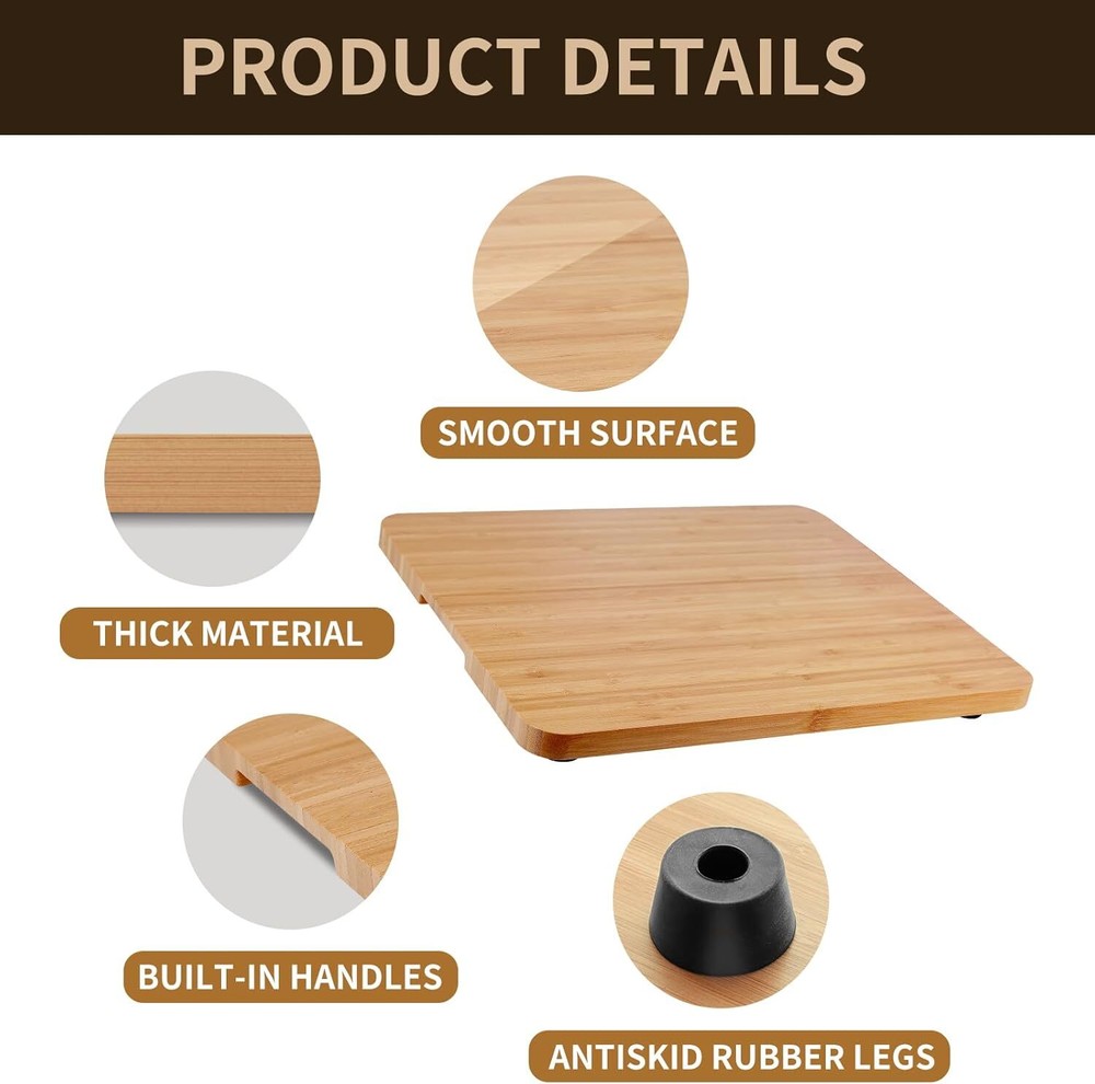 Product Description Cutting Board Compatible with Breville the Smart Oven Air Fryer Pro BOV900BSS, Accessories for Countertop Convection Toaster Oven 20.5"x 12.6" Heat Resistant Bamboo Cutting Board with Feet Premium Bamboo Material:This cutting board for kitchen designed for use with Breville smart oven is crafted from premium natural bamboo that has been carefully selected and processed. It is sturdy and durable, and you can use it for a long time Cabinet Protection: The large cutting board for Breville toaster oven is engineered with exceptional thermal insulation capabilities, allowing it to withstand high temperatures up to 450 ℉. It can shields your cabinet from oven heat, preventing damage. Create Extra Storage Space:With dimensions of 20.5"x 12.6", this bamboo cutting board for Breville air fryer toaster oven, its ample size helps free up valuable counter space by utilizing the area above your oven Easy to Clean and Maintain:The surface of the bamboo cutting boards is treated to ensure smoothness, resistance to water absorption, and prevention of bacterial growth. Cleaning is a breeze, it is dishwasher safe, offering convenience in maintain Package Includes: 1 cutting board compatible with Breville - smart oven air fryer pro BOV900BSS (machines not included). The dimensions inside the silicone feet are 20.5X12.6 inches; please measure your oven surface to ensure proper fit About Us We are a reputable seller with many years of experience selling on eBay. Our goal is to provide high-quality products and excellent customer service. Shipping Items will be shipped within 1-3 business days when we received payment. (Orders are not processed on weekends & holidays) Tracking information will be sent once item is shipped. Delivery time depends on destination and other factors Item is shipped to ebay address. Leaving correct address can minimize delay. For international shipping and shipping to Guam, Hawaii and Alaska, Please contact us before placing the order. International buyers please note: Import duties, taxes and charges are not included in the item price or shipping charges. These charges are buyer’s responsibility. We will try our best to reduce the risk of the custom duties. Local pick-up is unavailable at the moment. Contact Us We reply any email messages within 1 business / working days(off-duty at weekend). If you do not get a response from us, then please check your junk or spam mailbox. Our Business hours: Mon-Fri 9:00-18:00, UTC/GMT +8 hours. Please contact us either by clicking "contact seller" in the "purchase history" section or simply click "ask a question" at the bottom of this page. If you are unsatisfied with our item or service, please contact us before leaving any feedback. We are committed to resolve all issues in a friendly and satisfactory manner.