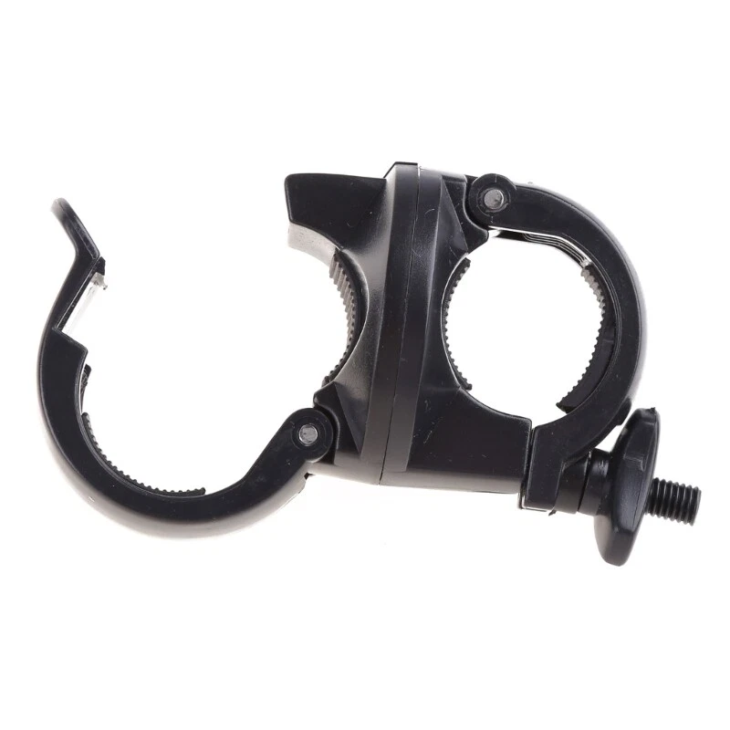 brand new and high quality Material: Plastic Specially designed for cycling lovers Easy-mount and easy-release universal bike mount clamp Mounting pedestal adjusts quickly and easily without any tools Hold the flashlight or torch on your Can be used for the diameter of flashlight between 27-30mm,it's suitable for the handlebar with diameter 28mm Can be adjusted in 360 degree Color: Black Quantity: 1Pc