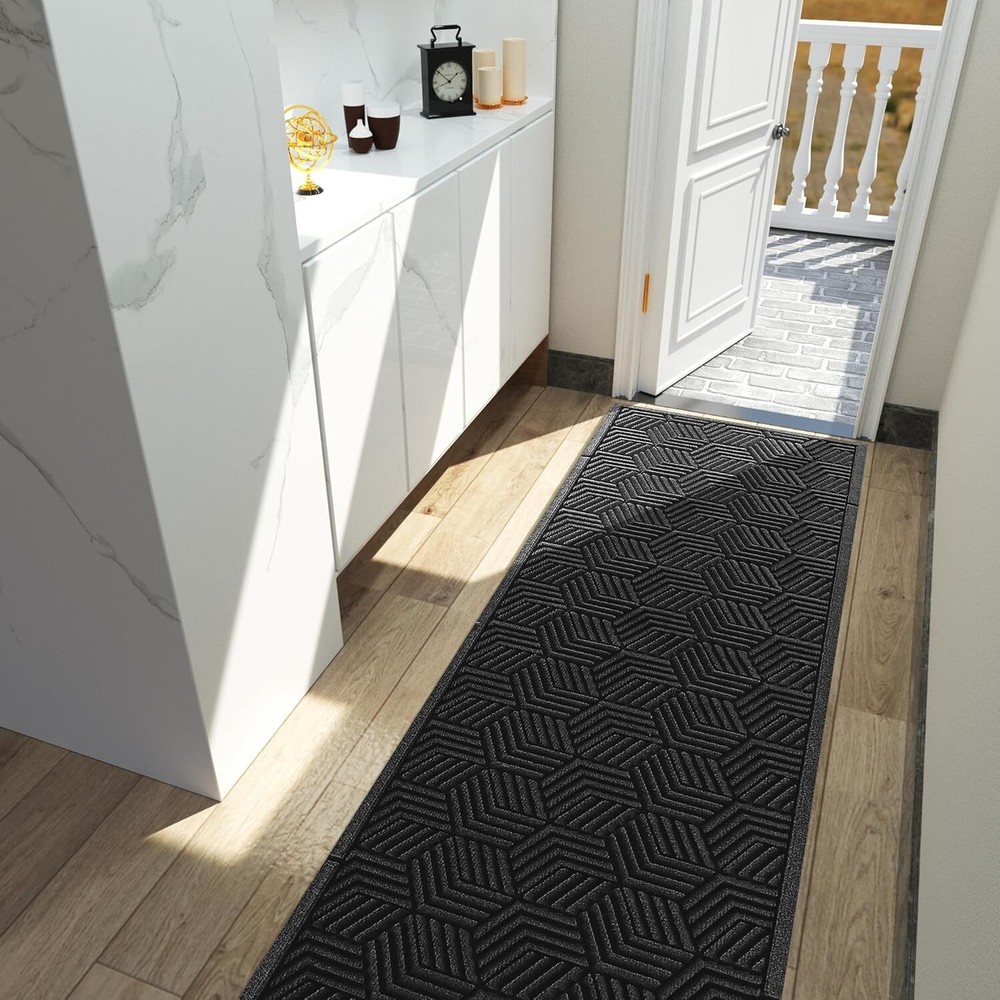 Room Type: Hallway Is Stain Resistant: No Material: Polyester, Rubber Era: 21st Century (2000-Now) Shape: Rectangle gtin13: Does not apply UPC: Does not apply Personalize: No Personalized: No Pile Height: 0.25 Inch Rug Form Type: Doormat Department: Adults Special Feature: Non Slip Item Weight: 8.93 Pounds Style: Outdoor & Indoor Size: 72 x 24 in Color: Black Construction Type: Machine Made Number Of Pieces: 1 Weave Type: Knitted Room: Any Room, Hallway, Garage, Garden, Terrace, Entrance Brand: Unbranded Product Dimensions: 72"l X 24"w Product Care Instructions: Machine Wash Pile Type: Normal Weave: Machine Made Features: Non-Slip, Water Absorption, Fade Resistant, Easy to Clean Back Material Type: Rubber Age Range (description): Adult Type: Doormat Theme: Welcome