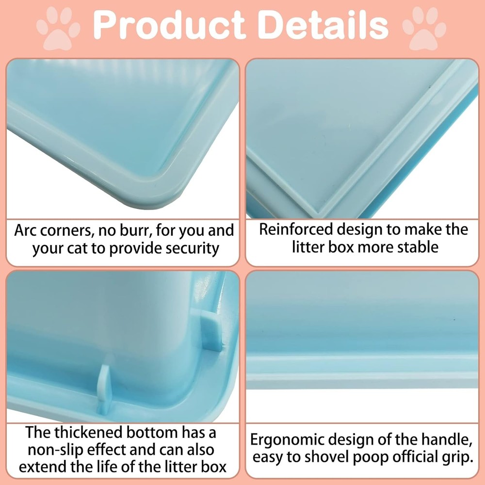Kathson 3PCS Medium Open Cat Litter Box with Scoop, Durable Non-Stick Product Details Item Weight: 1.5 pounds Manufacturer: kathson Item Package Dimensions L x W x H: 15.2 x 11.69 x 5.43 inches Item Dimensions LxWxH: 1 x 1 x 1 inches Item Weight: 1.5 Pounds Brand Name: kathson Target Audience Keyword: house-cats Size: Medium Material: Plastic Style: Durable Product Dimensions : 1 x 1 x 1 inches; 1.5 Pounds Manufacturer : kathson Brand: kathson Product Dimensions: 1"L x 1"W x 1"H Litter Box Type: Pan Litter Box [Open Design] This low entry cat litter box is open design to increase air circulation and remove unpleasant odors. Compared to lift-the-lid litter boxes, this kitty litter tray not only makes it easier for cat owners to clean up their cat's feces at any time, but it also reduces the cat's fear of the dark, which is very beneficial to the cat's health [High Quality Material] Our portable litter box is made of high quality PP material, which is safe, odorless, strong and durable, and it is easy to clean and suitable for long-term use. You can give your cat this pretty litter box as a gift to provide a comfortable living environment for him [Multipurpose] In addition to being a cat litter box, it can also be used as a pet bath box. And plastic cat litter tray also is very lightweight and is not only suitable for indoor pet places such as homes and pet stores, but also perfect to take with you when you take your cat on a trip or picnic [Safe Design] Our open litter box can provide full security for you and your cat.The four corners of the kitten litter pan is round and have no sharp edges, so you can easily pick it up. This design is also safe for cats, preventing them from accidentally touching the corners of the litter box and getting injured