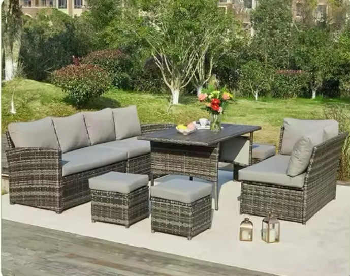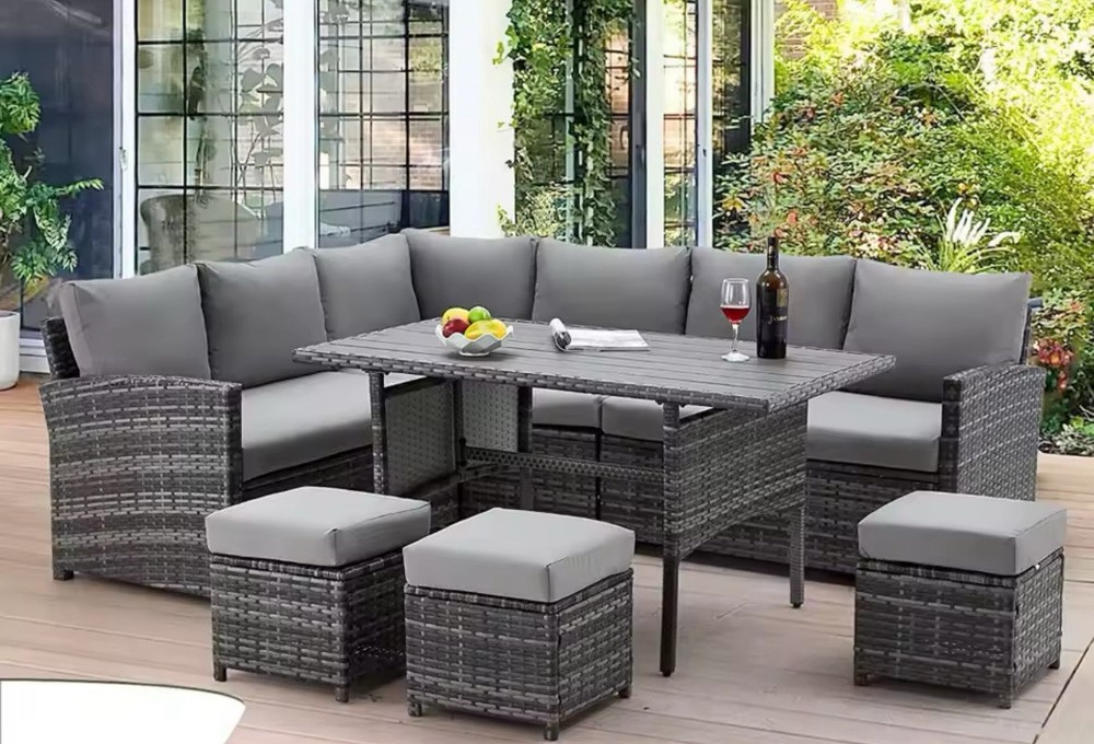 1. This outdoor furniture set is a game-changer! The versatile design lets you mix and match pieces for endless seating arrangements, and the included rain cover keeps everything protected. Sturdy, stylish, and perfect for relaxing outside—love how easy it is to rearrange for any occasion. A must-have for backyard fun!