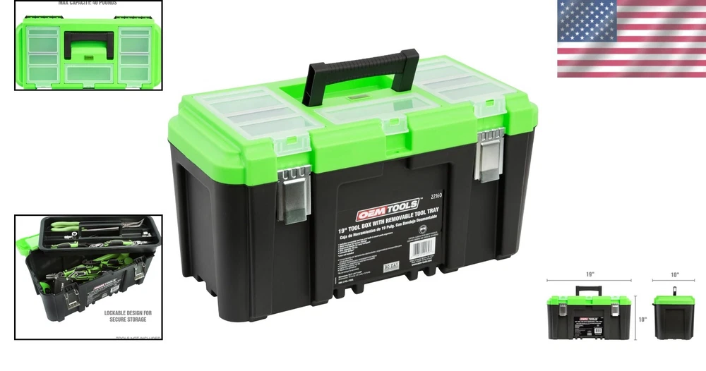 Durable Plastic Tool Box with Handle, 5 Compartment Organizer - 40 lb Capacity ‹ › ‹ › ‹ › ‹ › ‹ › ‹ › ‹ › ‹ › ‹ › ‹ › Durable Plastic Tool Box with Handle Dimensions: 19 x 10 x 10 inches Weight capacity: 40 lbs Features: Spacious organization for hand tools, power tools, parts, and fasteners in a portable design. Secure your tools with ease using the built-in lock slot; simply add your own padlock. Adaptable storage with a removable small plastic tool box tray, allowing for larger items or separate caddy use. High-access translucent lid featuring three individual compartments and two removable dividers. Effortlessly portable design with a robust construction that hosts a maximum load capacity of 40 lbs. Benefits: Keep your workspace organized and clutter-free. Safeguard your valuable tools while on the go. Versatile storage options to suit every tool and project. Quick access to frequently used items with compartmentalization. Transport tools, parts, and fasteners comfortably and securely. Why choose our Durable Plastic Tool Box? Whether you're a professional tradesperson or a DIY enthusiast, this Durable Plastic Tool Box is your ultimate solution for tool organization. With generous dimensions of 19 x 10 x 10 inches and a formidable load capacity of 40 pounds, you'll have all the space you need—without the hassle of clutter. The removable tray and compartmental lid let you customize your setup, ensuring that everything from small bits to power tools has its place. Don’t compromise on security! This toolbox is padlock-compatible, allowing you to keep your essential tools and electronics safe. With its thoughtful design, effortless portability, and ample capacity, selecting our tool box means choosing quality, functionality, and peace of mind. Elevate your toolkit—order yours today! Shipping Free & Fast Shipping - We offer free shipping to most of the USA with a normal delivery time of 3-7 days. However, due to the current situation, additional delivery time (up to 3 weeks) may be required for some items. Alternative Carriers - We may use alternative carriers (e.g. USPS, FedEx, UPS, etc.) to ensure your package arrives safely and on time. Due to the use of multiple carriers, we are unable to provide a tracking number automatically. Handling Time - Orders are processed and shipped within 1-2 business days of receiving cleared payment. Shipping Restrictions - Shipping to Alaska, Hawaii, Puerto Rico, Guam, and other US territories may incur shipping charges or delivery restrictions. Please contact us before ordering, or your order can be refunded/cancelled. State Restrictions - There may be restrictions based on your state of purchase. For example, certain items may not be shipped to California due to state regulations. Contact for Tracking Updates - If you require tracking updates or have any concerns about the delivery of your order, please feel free to contact us, and we will be happy to assist you. Return 30-Day Hassle-Free Returns - We want you to be completely satisfied with your purchase. If you are not, you can return the item within 30 days of receiving it for a full refund or exchange. Easy Return Process - To start a return, simply contact us and we will provide you with a prepaid return shipping label and detailed instructions. Restocking Fee - There are no restocking fees for returns. However, the buyer is responsible for return shipping costs if the return is not due to a seller's error. Refund Processing Time - Refunds will be processed within 5 business days of receiving the returned item in its original condition. Payment We accept all major credit cards, PayPal, and Apple Pay for your convenience. Your payment information is secure and encrypted to ensure a safe and seamless transaction. Please complete your payment within 3 days of purchase to avoid any delays in shipping. Feedback Your feedback is extremely important to us. We strive to provide the best products and customer service possible. If you are satisfied with your purchase, please take a moment to leave us a positive review. If you have any concerns or issues with your order, please contact us before leaving negative feedback. We are committed to resolving any problems and ensuring your satisfaction. Contact Us If you have any questions or concerns, please feel free to reach out to our customer support team. You can contact us through the eBay messaging system. We are available Monday to Friday, 9:00 am to 5:00 pm EST, and we will do our best to respond to your inquiry within 24 hours. Buy it now and enjoy a pleasant shopping experience! UPC: Not Set Item Width: Not Set Item Length: Not Set Item Height: Not Set Item Diameter: 19 inches Item Weight: 3.8 pounds Unit Quantity: 1 Features: Water Resistant,With Handle,Removable Tray,Padlock Security Slot,Compartmental Lid,Multi-compartment Design,Removable Dividers Brand: Unbranded Type: Tool Box Number of Items: 1 Number of Drawers: 0 Material: Plastic Size: Large Capacity: 40 lb Model: Not Set MPN: Not Set Color: Black Finish: Glossy Country/Region of Manufacture: Not Set Manufacturer Warranty: Not Set Unit Type: lb
