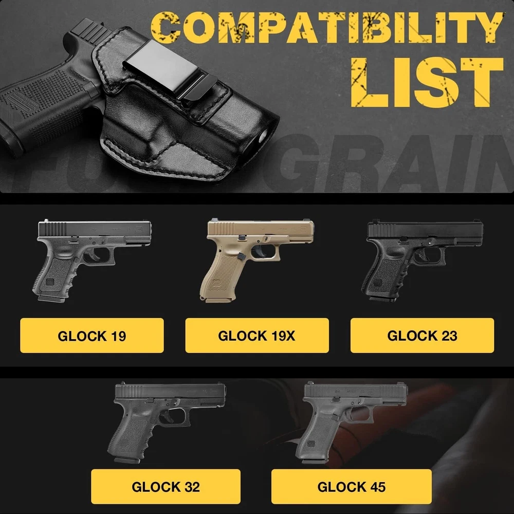 Durable Right-Handed Leather Holster for Glock 19 with Full Trigger Coverage ‹ › ‹ › ‹ › ‹ › ‹ › ‹ › ‹ › ‹ › Durable Right-Handed Leather Holster for Glock 19 Handmade Full Grain Leather Holster for Glock 19 - Custom Fit for Glock 19/19X/23/32/45 Features: Crafted from premium full grain leather, each holster is handmade to ensure quality and durability. Custom molded to provide a perfect fit for your Glock 19, ensuring reliable performance. Full trigger coverage helps to prevent negligent discharges, giving you peace of mind. Belt clip compatible with 1.5’’ & 1.75’’ wide belts (not suitable for 2.0’’ duty belts). Smooth beeswax hand-polished edges allow for comfortable, all-day carrying inside the waistband. Exquisite crafted tight clean stitching enhances durability and style. Lifetime warranty with no questions asked return policy, ensuring your satisfaction and confidence in your purchase. Benefits: Unmatched craftsmanship using premium materials guarantees a long-lasting product. Enhanced safety features provide assurance when carrying your firearm. Perfect for concealed carry, allowing you to carry discreetly and comfortably. Versatile belt compatibility for easy attachment and accessibility. Beautifully polished for a sophisticated appearance, suitable for any occasion. Why Choose Our Leather Holster? In a world where security and style go hand in hand, our Durable Right-Handed Leather Holster for Glock 19 stands out as the essential accessory for any responsible handgun owner. Designed specifically for the Glock 19 and its compatible models, this holster not only provides a secure fit but also prioritizes safety with its full trigger coverage. Every stitch and polish reflects our commitment to quality, ensuring that your holster is as impressive in craftsmanship as it is in function. Don’t compromise on quality or safety – choose a holster that understands the balance between strength and peace. With a lifetime warranty and a commitment to customer satisfaction, enjoy the confidence that comes with owning a product built to last. Invest in your safety and elegance today – order your Durable Right-Handed Leather Holster for Glock 19 now! Shipping Free & Fast Shipping - We offer free shipping to most of the USA with a normal delivery time of 3-7 days. However, due to the current situation, additional delivery time (up to 3 weeks) may be required for some items. Alternative Carriers - We may use alternative carriers (e.g. USPS, FedEx, UPS, etc.) to ensure your package arrives safely and on time. Due to the use of multiple carriers, we are unable to provide a tracking number automatically. Handling Time - Orders are processed and shipped within 1-2 business days of receiving cleared payment. Shipping Restrictions - Shipping to Alaska, Hawaii, Puerto Rico, Guam, and other US territories may incur shipping charges or delivery restrictions. Please contact us before ordering, or your order can be refunded/cancelled. State Restrictions - There may be restrictions based on your state of purchase. For example, certain items may not be shipped to California due to state regulations. Contact for Tracking Updates - If you require tracking updates or have any concerns about the delivery of your order, please feel free to contact us, and we will be happy to assist you. Return 30-Day Hassle-Free Returns - We want you to be completely satisfied with your purchase. If you are not, you can return the item within 30 days of receiving it for a full refund or exchange. Easy Return Process - To start a return, simply contact us and we will provide you with a prepaid return shipping label and detailed instructions. Restocking Fee - There are no restocking fees for returns. However, the buyer is responsible for return shipping costs if the return is not due to a seller's error. Refund Processing Time - Refunds will be processed within 5 business days of receiving the returned item in its original condition. Payment We accept all major credit cards, PayPal, and Apple Pay for your convenience. Your payment information is secure and encrypted to ensure a safe and seamless transaction. Please complete your payment within 3 days of purchase to avoid any delays in shipping. Feedback Your feedback is extremely important to us. We strive to provide the best products and customer service possible. If you are satisfied with your purchase, please take a moment to leave us a positive review. If you have any concerns or issues with your order, please contact us before leaving negative feedback. We are committed to resolving any problems and ensuring your satisfaction. Contact Us If you have any questions or concerns, please feel free to reach out to our customer support team. You can contact us through the eBay messaging system. We are available Monday to Friday, 9:00 am to 5:00 pm EST, and we will do our best to respond to your inquiry within 24 hours. Buy it now and enjoy a pleasant shopping experience! UPC: Not Set Model: Not Set Item Height: Not Set Item Length: Not Set Item Weight: 0.13 kg Item Width: Not Set Unit Quantity: 1 For Gun Make: GLOCK Material: Leather,Full Grain Leather Carry Location: Inside Waistband (IWB) For Gun Type: Pistol Gauge/Caliber: 9 mm Luger,.9 mm Luger Carry Position: 3 o'Clock Attachment Type: Belt,Clip Features: Full Cover Trigger,Crafted Tight Clean Stitching,LIFETIME WARRANTY Cant: Neutral Set Includes: 1 Leather Holster Brand: Unbranded Type: Concealment Holster Number of Magazines: 1 Level: Level 1 Sport/Activity: Shooting MPN: Not Set Handedness: Right Color: A-leather holster Country/Region of Manufacture: Not Set Manufacturer Warranty: Not Set Unit Type: Unit