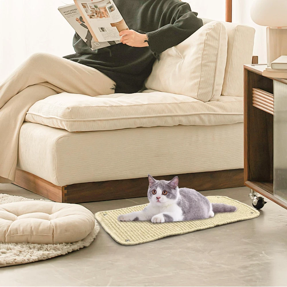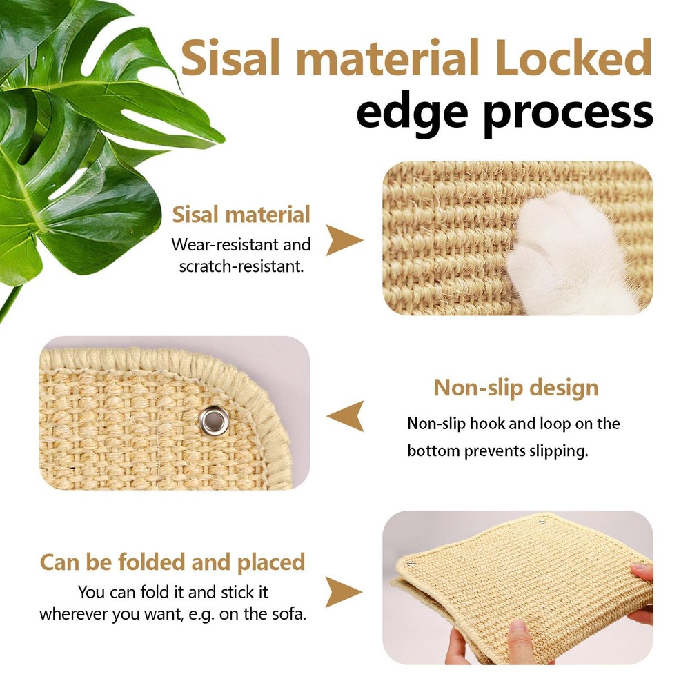 This sisal scratch pad is a game-changer for my cat! It's super sturdy, mounts easily on walls or furniture, and my kitty loves scratching and lounging on it. The natural sisal is gentle on paws, and the compact size fits anywhere. Perfect as a gift for fellow cat lovers—super practical and stylish. My furniture is finally safe from claws!