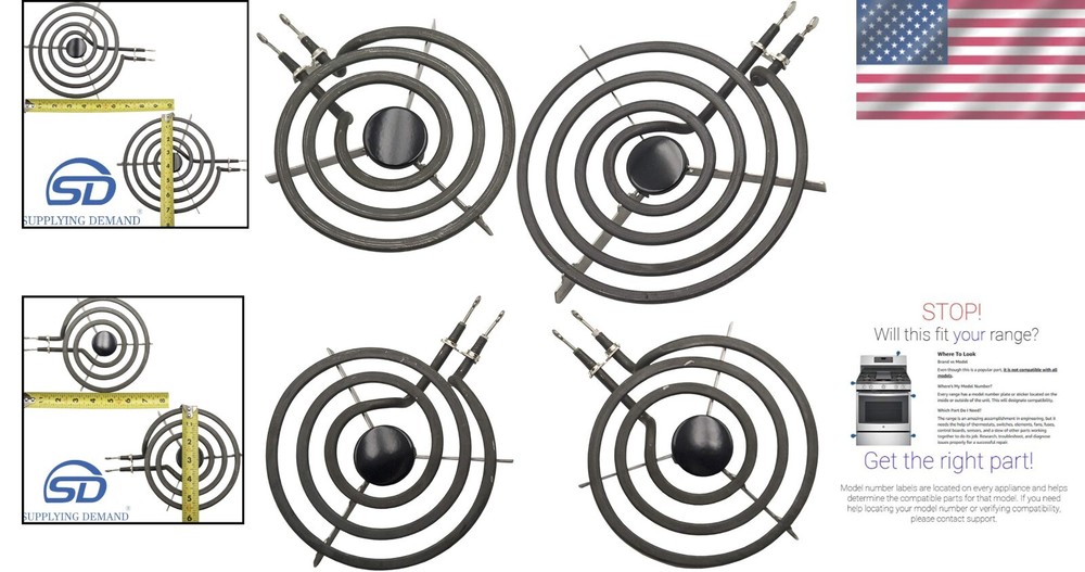 Durable Surface Element Kit for Electric Ranges - Easy Drop-in Installation ‹ › ‹ › ‹ › ‹ › ‹ › ‹ › ‹ › ‹ › ‹ › Durable Surface Element Kit for Electric Ranges Easy Drop-in Installation! Ensure your cooking experience is seamless and efficient with our Durable Surface Element Kit, designed to elevate your culinary endeavors. Kit Includes: 1 x 8 inch element - Larger surface element (240V, 2100 Watts, 4 Turn) 3 x 6 inch elements - Smaller surface elements (240V, 1250 Watts, 3 Turn) Alternate Part Numbers: For WB30X253: AP2027813, 325503, AH244014, EA244014, PS244014, WB30X0253, WB30X5060, WB30X5095 For WB30X254: AP2027814, 325507, AH244015, EA244015, PS244015, WB30X0254, WB30X5061, WB30X5094 Key Features: High-performance elements with robust wattage output. Easy drop-in installation, ensuring you can quickly get back to cooking. Compatible with major brands, delivering reliability and compatibility. Important Safety Information: Always disconnect your appliance from the power supply before servicing. If installation issues arise, ensure the receptacles and switches are functioning properly. Why Choose Our Durable Surface Element Kit? Cooking should be a joy, not a hassle. This Surface Element Kit is meticulously engineered to provide you with the power and efficiency needed for optimal cooking. With both 8-inch and 6-inch elements included, enjoy versatility in your cooking approach, whether sautéing, boiling, or simmering. Don't compromise on quality. Invest in our Durable Surface Element Kit and ensure your electric range performs at its best. Experience the satisfaction of cooking with precision and reliability - order yours today! Shipping Free & Fast Shipping - We offer free shipping to most of the USA with a normal delivery time of 3-7 days. However, due to the current situation, additional delivery time (up to 3 weeks) may be required for some items. Alternative Carriers - We may use alternative carriers (e.g. USPS, FedEx, UPS, etc.) to ensure your package arrives safely and on time. Due to the use of multiple carriers, we are unable to provide a tracking number automatically. Handling Time - Orders are processed and shipped within 1-2 business days of receiving cleared payment. Shipping Restrictions - Shipping to Alaska, Hawaii, Puerto Rico, Guam, and other US territories may incur shipping charges or delivery restrictions. Please contact us before ordering, or your order can be refunded/cancelled. State Restrictions - There may be restrictions based on your state of purchase. For example, certain items may not be shipped to California due to state regulations. Contact for Tracking Updates - If you require tracking updates or have any concerns about the delivery of your order, please feel free to contact us, and we will be happy to assist you. Return 30-Day Hassle-Free Returns - We want you to be completely satisfied with your purchase. If you are not, you can return the item within 30 days of receiving it for a full refund or exchange. Easy Return Process - To start a return, simply contact us and we will provide you with a prepaid return shipping label and detailed instructions. Restocking Fee - There are no restocking fees for returns. However, the buyer is responsible for return shipping costs if the return is not due to a seller's error. Refund Processing Time - Refunds will be processed within 5 business days of receiving the returned item in its condition. Payment We accept all major credit cards, PayPal, and Apple Pay for your convenience. Your payment information is secure and encrypted to ensure a safe and seamless transaction. Please complete your payment within 3 days of purchase to avoid any delays in shipping. Feedback Your feedback is extremely important to us. We strive to provide the best products and customer service possible. If you are satisfied with your purchase, please take a moment to leave us a positive review. If you have any concerns or issues with your order, please contact us before leaving negative feedback. We are committed to resolving any problems and ensuring your satisfaction. Contact Us If you have any questions or concerns, please feel free to out to our customer support team. You can contact us through the eBay messaging system. We are available Monday to Friday, 9:00 am to 5:00 pm EST, and we will do our best to respond to your inquiry within 24 hours. Buy it now and enjoy a pleasant shopping experience! Item Weight: 2.55 pounds Unit Quantity: 4 Set Includes: Burner,1 8 inch element,3 6 inch elements Suitable For: Electric Range Compatible Model: WB30X253 Features: Electronic Ignition,4 Turn for 8 inch element,3 Turn for 6 inch elements Type: Burner Power Source: Electric Color: Black Installation: Drop-In Capacity: 0.5 ft³ or less Material: Ceramic Finish: Glossy Number of Items in Set: 4 Power: 2400 W Item Depth: 1-5 in Unit Type: lb