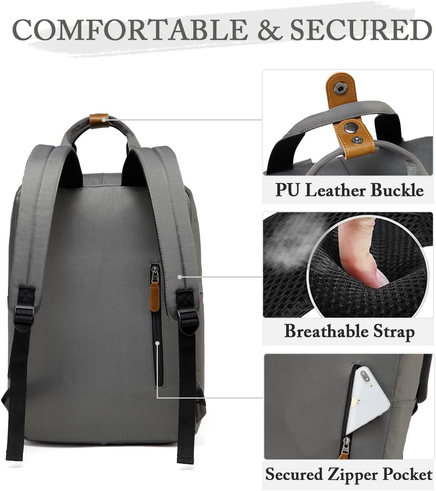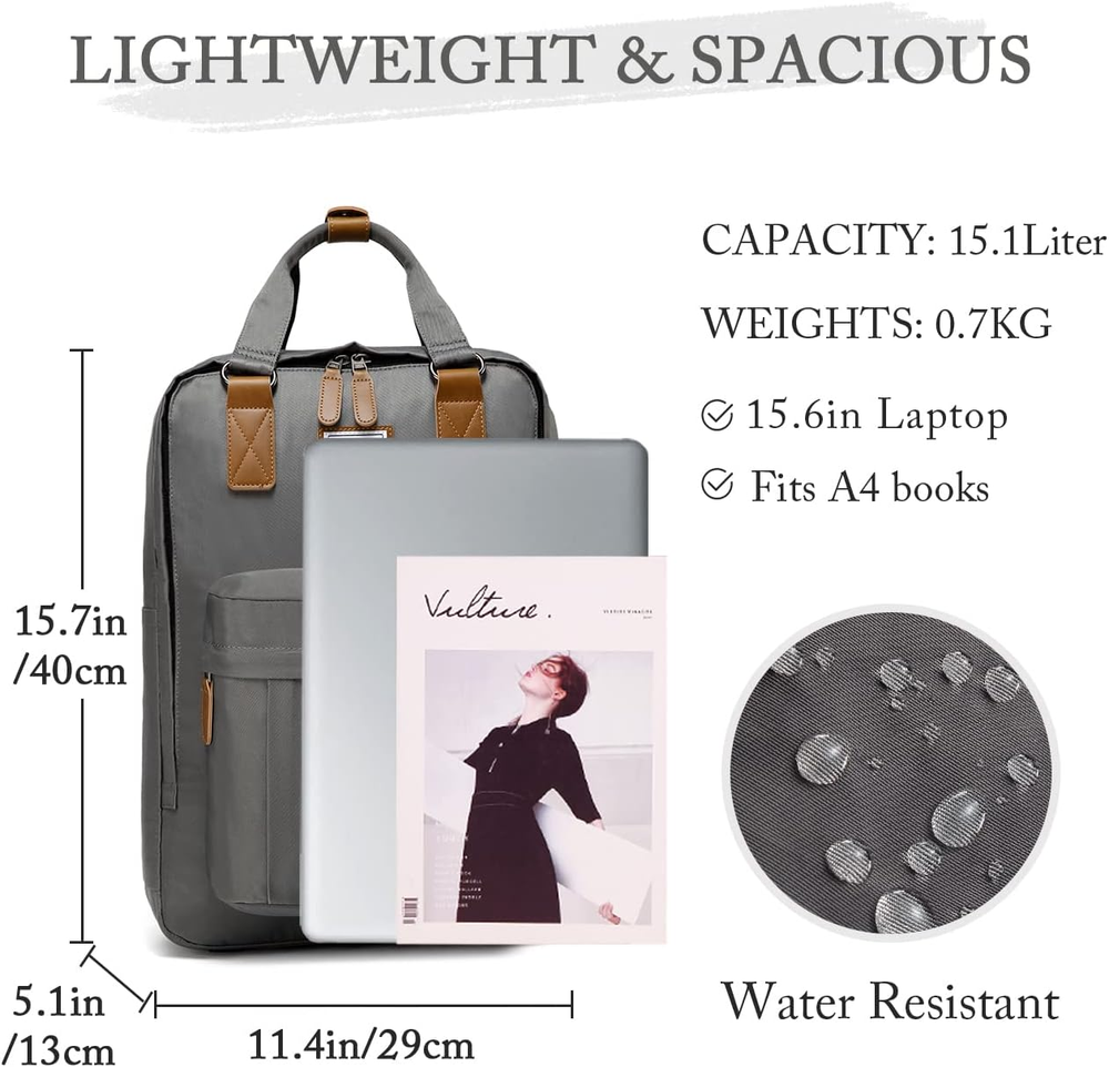 Absolutely love this backpack! The water-resistant fabric is a lifesaver, and the vintage design looks sleek. Super spacious with comfy straps and handy top handles—perfect for school, travel, or work. Dark gray color stays clean, and the quality is solid. Worth every penny!