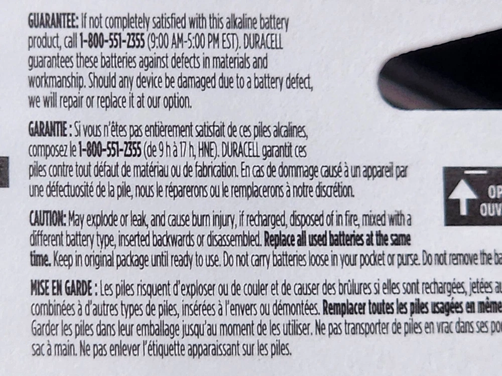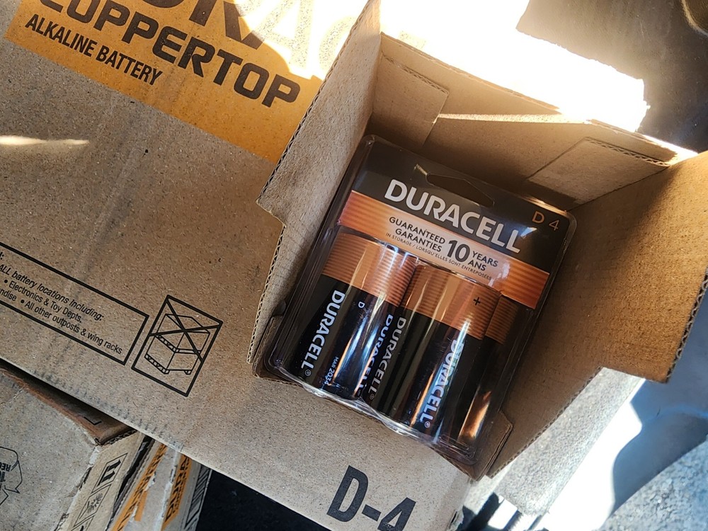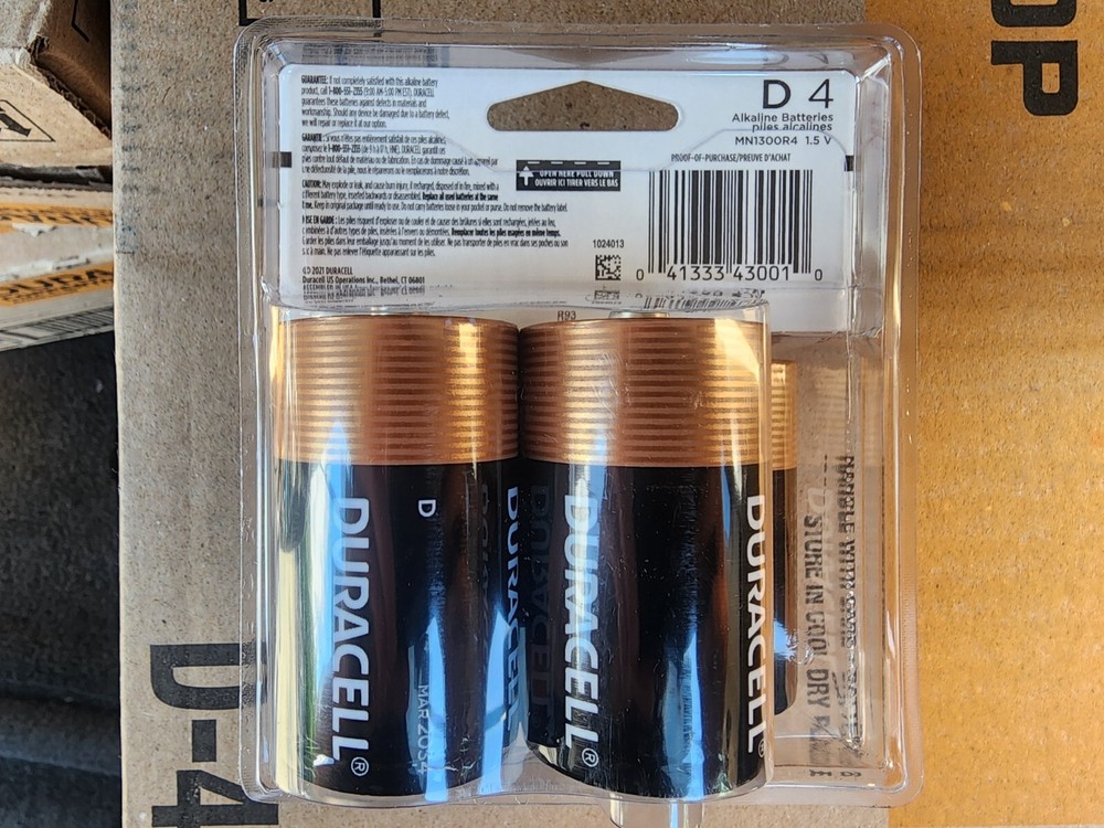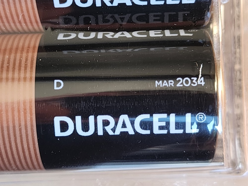 New D-cell Duracell Coppertop batteries 4-packs sealed in packaging. Batteries have always been stored in a protected environment and factory boxed. Recent inventory with an expiry of Mar. 2034.