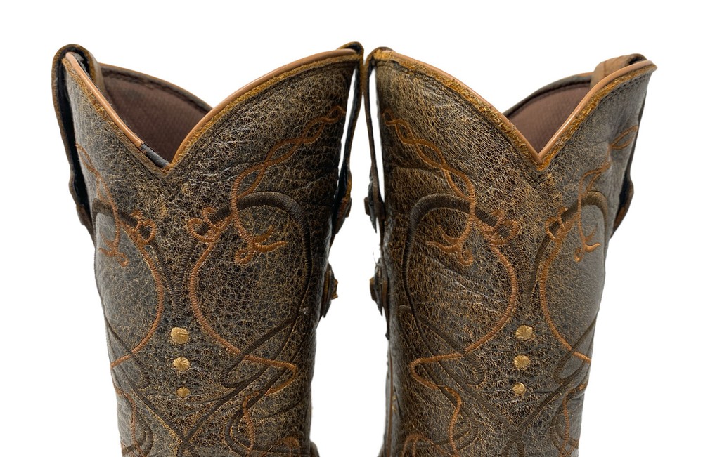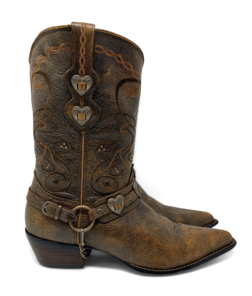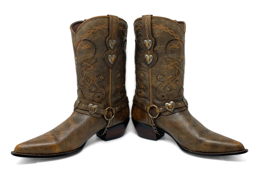 Up for purchase is this pair of Durango Crush Heartbreaker Harness Heart Concho Brown Leather Cowboy Boots RD4155 Women’s Size 10M. Boots are in overall very good pre-owned condition with light cosmetic wear. Images are part of the item description so please see all images for more details. If you have any questions please let us know. Thank you