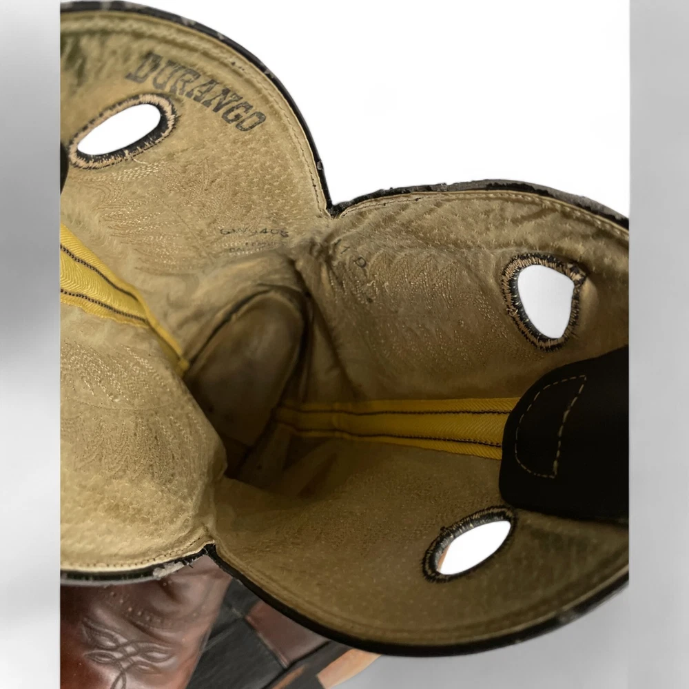 Theme: Biker, Cowboy, Western Shoe Width: D Accents: Embroidered Pattern: Western Department: Men Model: SW6450 Features: Comfort Closure: Pull On Style: Western Brand: Durango Color: Multicolor Toe Shape: Almond Toe Upper Material: Leather US Shoe Size: 11 Type: Boot