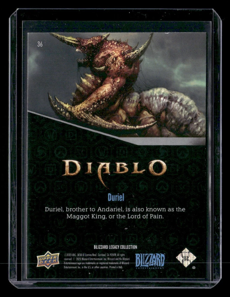 Year Manufactured: 2023 Autographed: No Season: 2023 Franchise: NON_SPORT Graded: No Player/Athlete: Duriel Card Number: 36 Type: Non-Sport Trading Card Set: 2023 Upper Deck Blizzard Legacy Collection