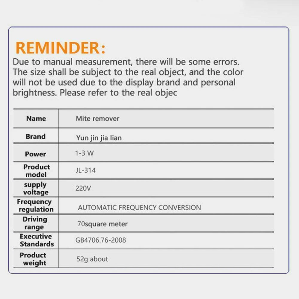 Description Description&Preview shipping&policy Description: description: Brand new, unused, unopened, and undamaged items in the original packaging (applicable packaging). Material: PVC color: White Method: Ultrasound Voltage: 220 Power: 1-3W Practice range: 70㎡ Frequency modulation: automatic frequency conversion Size: about 5.5x3x9.5 cm/2.17x1.18x3.74 inches Can produce frequency ultrasonic stimulation, effectively control the range of mites. Suitable for families, restaurants, hotels, hospitals, etc. Preview: Thank you for your purchase Problems? You can follow below process to chontact us. There is a time zone difference,but we will do our best to quickly response to your questions: Shipping ● We will arrange shipping for you within 24 Hours after payment cleared except the holidays. ● We always send the item to the address you give us on PAYPAL to ensure the security of the item. If you have changed your address, or want us to ship to another address, please change to the new address when you pay us with PAYPAL, otherwise we will not be responsible if the package is lost. Payments We accepts Paypal only If you have any questions about the payment,please contact us through eBay message. Import Duties In case some duty is due Upon delivery, it is your responsibility to meet that expense and this may cause delays to delivery schedule and you may have to pickup goods at the customs office. Terms & Conditions By bidding on this item,the Buyer agrees to all of the terms and conditions as outlined in this listing .please ensure to read and agree to All eBay terms and Conditions before bidding. All pictures are for illustration purpose only and Colours may vary slightly. Our store obeys all eBay Rules and Policies. Returns Policy To Return an item you must contact us and take photos of your item to clearly show any damage or unusual aspects of it. Approved returns will be subject to inspection on arrival. Items must be returned in original condition with all original packaging. All shipping and handing charges are non-refundable Return delivery costs are the responsibility of the buyer. We will cover the cost if sending replacement/repaired items. Within 7 days after receiving your products, we offers a no-hassle 7 day exchange/replace only if your items are found to be defective by manufacturer.