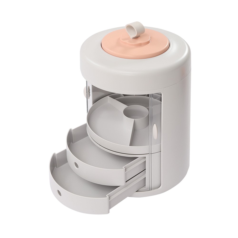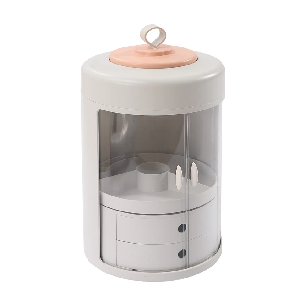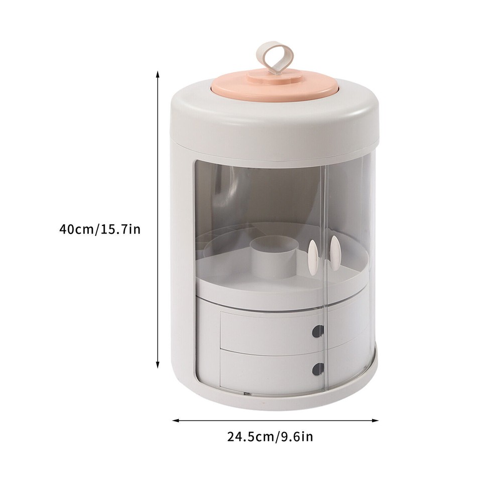 Dust-Proof Makeup Organiser 360° Rotating Cosmetic Storage Box with 2 Drawers Application It is suitable for use on the dressing table, bedroom, bathroom, bedside table, or living room to place your various cosmetics, such as water lotion, sunscreen, blocking cream, jewelry, lipstick, foundation, makeup brushes, eyeliners, eye shadow, nail polish, perfume, and other cosmetics. Specification Color: Pink Style: Modern Mounting Type: Tabletop, Freestanding Number of Compartments: 4 Material: ABS+PC Gross Weight: 2.9kg/6.4lbs Net Weight: 2.6kg/5.73lbs Product Size: 24.5*40cm/9.6*15.7inch Package Size: 44.5*29*29cm/17.52*11.42*11.42inch Package Included 1 * Makeup Organiser Description The beauty of a girl certainly can not be treated lightly! Your beauty and the cleanliness of your dressing table are guarded by us. A good makeup organizer can make your charm bloom unconsciously. Our makeup organizer has four layers that can hold a lot of cosmetics. With it, your room will be tidier and more beautiful. Let's say goodbye to the cluttered dressing table and start making changes now! Key Features High-quality Material: The material of this makeup organizer is hard and durable ABS and PS, which will not be easily deformed or damaged. So it has a long service life. Keep Tidy&Organized: It takes up a small desktop area, which makes good use of the vertical space to store all kinds of cosmetics and skincare products neatly and it would be a great addition to your bedroom, bathroom, counter, dresser, and vanity to keep them a lot neater looking. Beautiful Appearance: The round and double door design of this product make it very beautiful. The overall cylindrical design and the crystal clear lid give this product a romantic and luxurious look. Large Capacity: With four layers of storage space, it can hold up to 8 bottles of toner and lotion, 3 essentials, 5 lipsticks, 10 masks, and more. This large capacity will meet your daily storage needs. Thoughtful Helper: The makeup organizer features a thoughtful zoning design, so you can place products with different functions in the appropriate areas. The compartmentalized design not only makes full use of the space in the cosmetic case but also makes it easy to access. 360° Rotating Design: This product is equipped with a 360-degree rotating chassis. You only need to move your fingertips to rotate flexibly, and it is more convenient to pick up items. And the chassis has steel balls at the bottom to make the rotation smoother. Considerate Design: The design of transparent double-sided door allows you to directly see the storage location of cosmetics and open the organizer from both sides, which is convenient and time-saving. Dustproof Design: It adopts a dustproof cover and a closed drawer, which can effectively protect your cosmetics from water and dust. Easy to Carry: This makeup organizer is compact, lightweight(5.73lbs), and has a silicone carry handle on top, making it easy to carry. Wonderful Gift: The beautiful appearance and simple design make it a great gift. You can give it to your family members, colleagues, or friends to enhance their relationship with each other. Easy to Clean: The surface of this makeup organizer box is smooth and flat, which is easy to clean. You just need to wipe it with a wet rag. Installation-free : The makeup organizer you receive is already installed, you can get it and start using it right away. Protective Shipping: In order to prevent the product from being damaged and bumped during transportation, we fill the package with anti-collision protection foam to protect your products to the maximum extent possible. Details Pull-out Drawers: The bottom two drawers can be pulled out completely, if the drawers are dirty, you can easily clean them. You can also easily access the items placed in the back. Rounded Corners: The product's corners are rounded, which can prevent your hands from being scratched and makes it very safe to use. Multifunctional Box: The top of the makeup organizer has a removable box that you can use to carry small samples of your skincare products when you are on the go. And you can fix it to the makeup organizer by turning it to the right. Enough Height: The top layer of this makeup organizer has a heightened design, which can easily accommodate tall bottles and solve your troubles of not being able to put your cosmetics. Notes Please pay attention to avoiding the makeup case from being scratched by sharp objects, or hit by heavy objects. Please avoid exposing it to the sun for a long time. Please allow the slight color difference caused by the shooting light and 1-3 cm error due to manual measurement, and make sure you do not mind before ordering. Payment Delivery details Terms of sales About us Contact us Payment We accept ebay payment 。 Fees such as import duties, taxes are not included in the item price or shipping costs. These charges are the buyer's responsibility. Delivery details Shipping: 2-9 working days to: USA Terms of sales We maintain high standards of excellence and strive for hundred percent customer satisfaction. Feedback is very important to us. We hope that you contact us immediately before you give neutral or negative feedback, so that we can address your concerns. It is impossible to address issues if we do not know about them! About us Your satis faction is our ultimate goal. We work hard to earn your trust and future business. Our certified technicians have tested each item before shipping. The unit comes with 1 year limited warranty on all manufacturing defects. a) If you receive a defective item, you may return it or ask for a discount. Please contact us within 14 days after you receive the package. b) What you returned must be intact and in its original packaging as re? u. Customer is responsible for shipping costs of the returned item. c) We will cover the cost of shipping back t with the shipping rate indicated in the registration page. We will send you a new unit or refund 