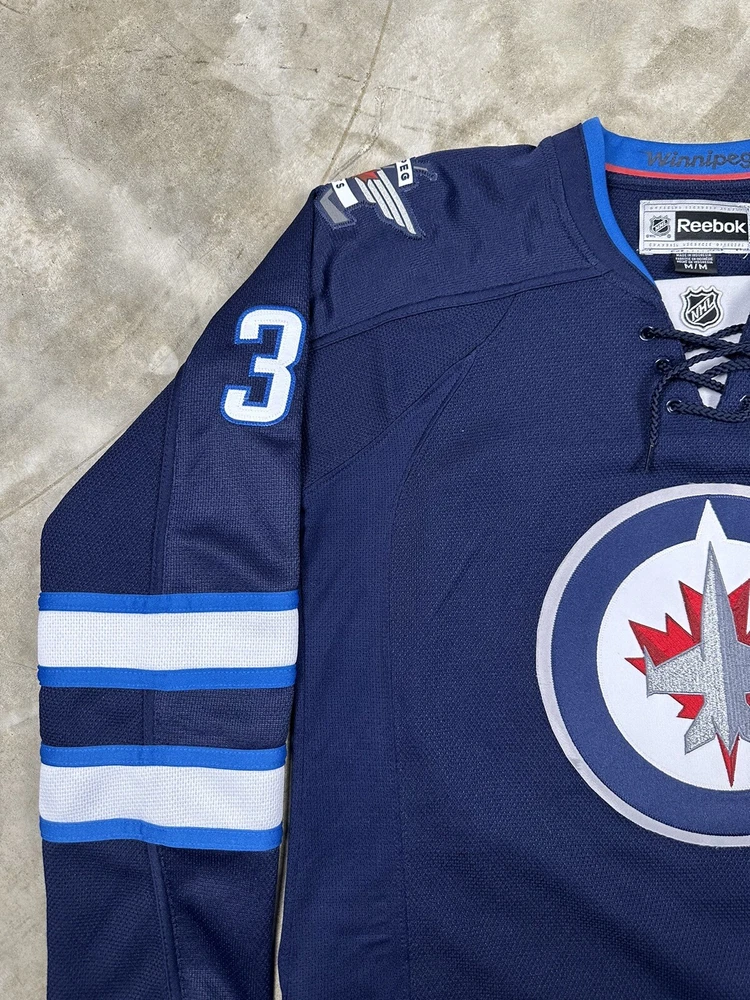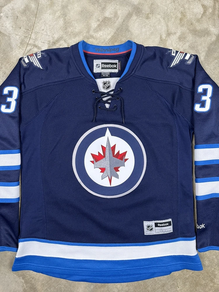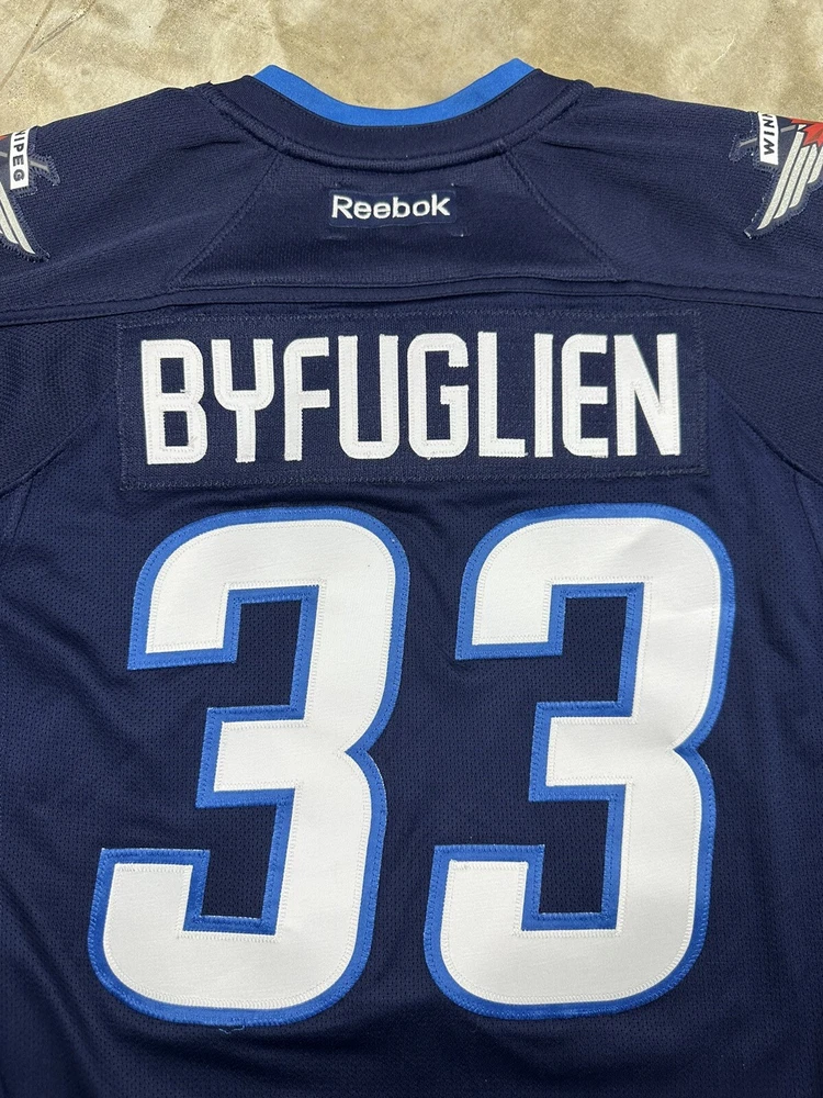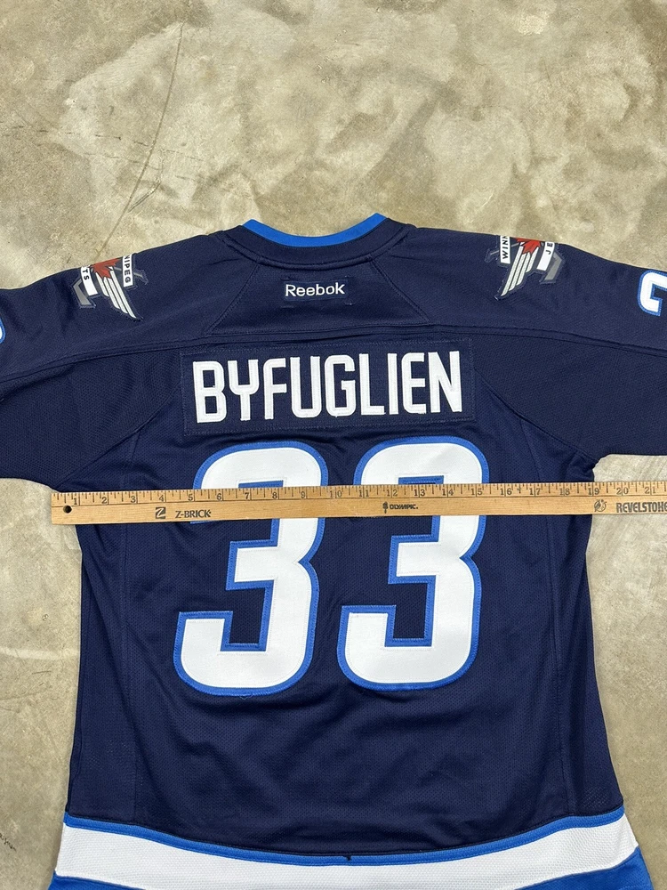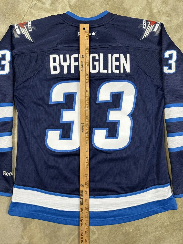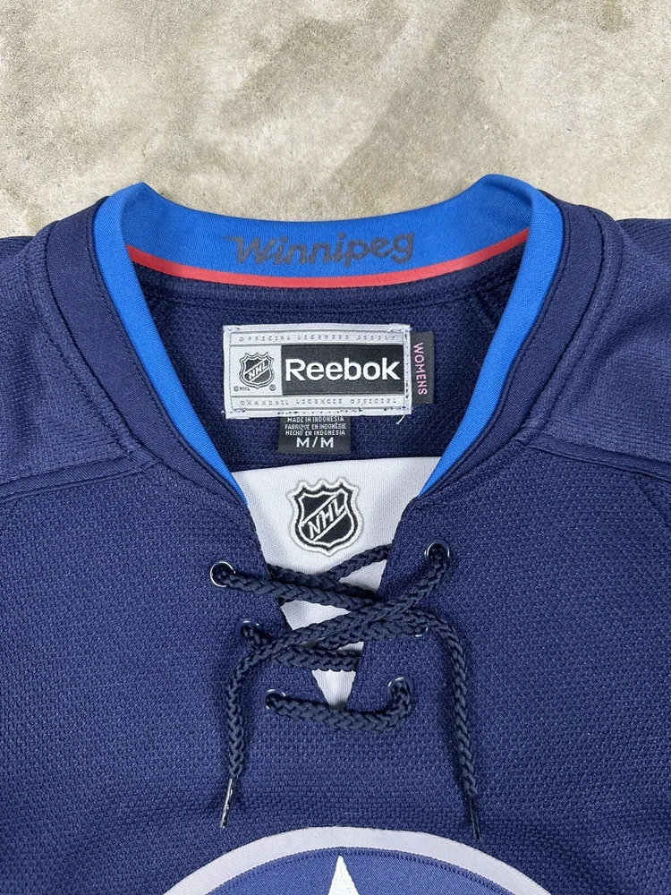 Brand:ReebokPlayer:Dustin ByfuglienOfficially Licensed:YesLeague:National Hockey League (NHL)Color:BlueSport:HockeySize:MTeam:Winnipeg JetsGender:WomenProduct:Jersey