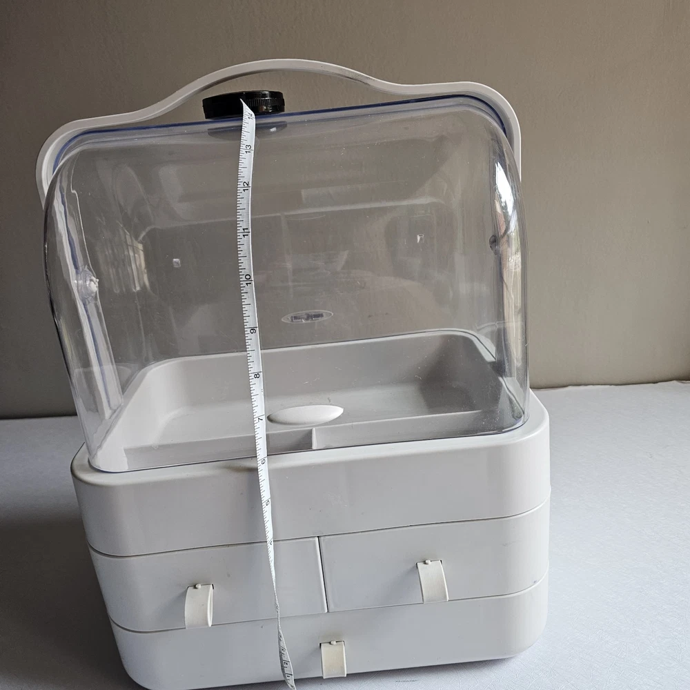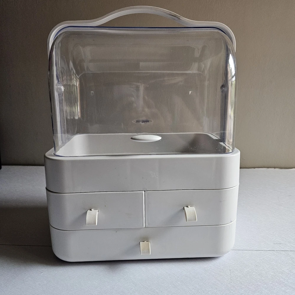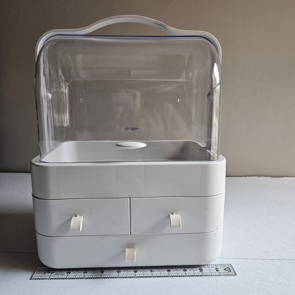 Dustproof Makeup Storage Box with Jewelry Organizer for Dressing Table
