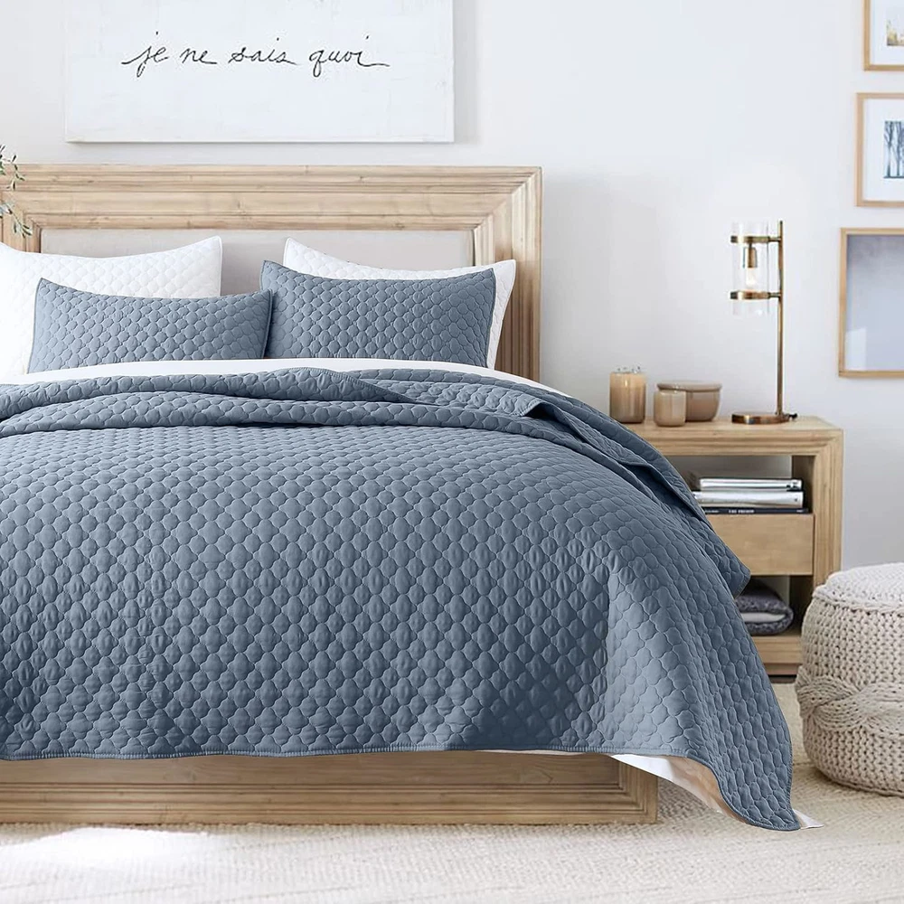 Fast Shipping Great Customer Support Satisfaction Guaranteed DESCRIPTION Shipping Shipping Shipping All domestic packages are shipped for Free (Unless other shipping method was selected during the checkout) Most items ship and arrive much sooner than the estimate delivery date. Usually within 2-3 days from payment. However, we have longer estimates to compensate for the occasional delay or supply chain breakdown. We do not accept P.O. BOXES - PLEASE PROVIDE A PHYSICAL ADDRESS Return Return Return In the event that you would like to return your purchase, we allow returns that are processed within the defined return date (the return date is to be found in the return policy/shipping and handling section) Please contact us for a return authorization and the return shipping address. Payment Payment Payment PayPal is our preferred method of payments it's the quickest, easiest and most secure way to pay for your goods or services online. PayPal offers buyer and seller protection should there be a problem. If you do not have a PayPal account, to get started and buy your first item with us is very easy. Simply click on the 'Buy It Now' button and follow the eBay checkout steps. Select PayPal as the payment method you then will be given the chance to enter your card details in to PayPal's secure checkout in order to pay for your order. Once the payment has been made, you will then be given the opportunity to make your own PayPal account to make paying for your items in the future very easy. Should there be a problem with payment please do let us know. Feedback Feedback Feedback Customer satisfaction is very important to us. If you have any problem with your order,please contact us and we will do our best to make you satisfied, please do not leave a negative feedback before we resolve your problem. We guarantee that your issue will be solved quickly. As long as you are happy with your purchase of , please leave us a positive feedback. Your feedback is very important to us it affects our search placement on eBay. We will leave a positive feedback for you in return automatically once we receive your feedback. Contact Us Contact Us Contact Us If you have any queries, please contact us via ebay. We usually respond within 24 hours on weekdays. Thank you for visiting our ebay store! Lightweight Soft Quilt For All Season: This light weight quilt is made of breathable 100% polyester, keeps you cozy on spring, fall or summer nights. And when it's cold, the lightweight yet warm quilt also perfect for layering over a duvet cover for extra insulation and that ‘hotel chic’ look. Queen Size Includes: 1 PCS Bedspread 90" x 96", 2 PCS Pillowshams 20" x 26". Modern Style Cloud Pattern: The quilt set comes with attractive colors with exquisite stitching cloud pattern, Smooth texture add more contemporary effect to your bedroom. Practical& Distinctive: Combined traditional utility with modern simple appearance, this multipurpose coverlet set is a good decoration as quilt, bedspread, comforter set, blanket and bed cover. EASY CARE: This quilt is easy to care for and fade, wrinkle and shrink resistant. Simply machine wash in cold water, tumble dry, no bleach. Dusty Blue Queen Quilt Set - Lightweight Microfiber Bedspread, 3 Pieces Click here to see description Fast Shipping Great Customer Support Satisfaction Guaranteed DESCRIPTION Shipping All domestic packages are shipped for Free (Unless other shipping method was selected during the checkout) We ship within two business days of payment, usually sooner Standard FREE shipping takes between 3-5 business days Expedited shipping takes between 2-3 business days Overnight shipping takes between 1-2 business days We do not accept P.O. BOXES - PLEASE PROVIDE A PHYSICAL ADDRESS We Ship Globally using ebay's GSP, the item is sent to a logistic center in KY and shipped from there to the rest of the world. International customers are responsible for all duties and taxes Contact your local authority for questions related to the amount of duties or taxes you will be responsible for Return In the event that you would like to return your purchase, we allow returns that are processed within the defined return date (the return date is to be found in the return policy/shipping and handling section) Please contact us for a return authorization and the return shipping address. Please contact us for a Return Merchandise Authorization (RMA) number. We advise you to use a reputable carrier service when returning your goods. Please pack all returns appropriately. We ship globally Via eBay's global shipping program (GSP). Thus we don't cover returns for items shipped globally. Buyers returning such items will be refunded ONLY for the item's cost and not for the shipping. please check the Voltage information and make sure it matches the one in your country. In case it's not stated in the description, do ask us. Payment PayPal is our preferred method of payments it's the quickest, easiest and most secure way to pay for your goods or services online. PayPal offers buyer and seller protection should there be a problem. If you do not have a PayPal account, to get started and buy your first item with us is very easy. Simply click on the 'Buy It Now' button and follow the eBay checkout steps. Select PayPal as the payment method you then will be given the chance to enter your card details in to PayPal's secure checkout in order to pay for your order. Once the payment has been made, you will then be given the opportunity to make your own PayPal account to make paying for your items in the future very easy. Should there be a problem with payment please do let us know. Feedback Customer satisfaction is very important to us. If you have any problem with your order,please contact us and we will do our best to make you satisfied, please do not leave a negative feedback before we resolve your problem. We guarantee that your issue will be solved quickly. As long as you are happy with your purchase of , pl