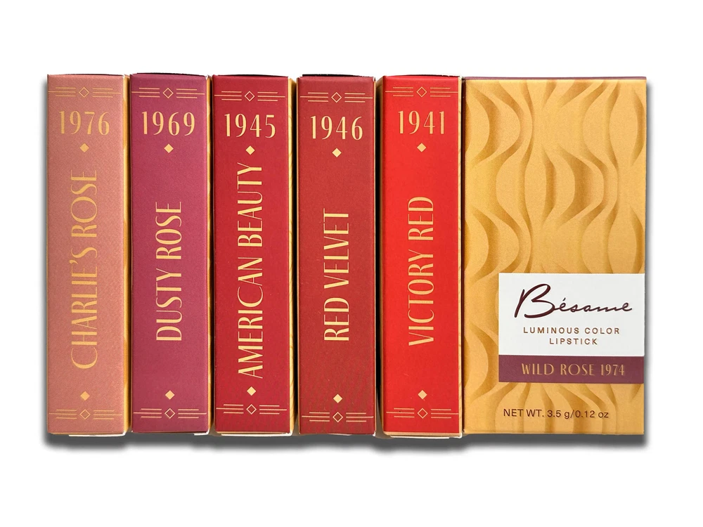 The perfect “everyday wear” shade, Dusty Rose - 1969 delivers a natural rose color inspired by the lighter hues women began wearing in the late 1960s. The triple-pigmented formula behind this shade provides long-lasting full coverage with just one coat. Nourishing ingredients – including Vitamin E and squalene – leave lips feeling hydrated and supple throughout the day. Invite Dusty Rose - 1969 into your beauty ritual as a softer alternative to your favorite Besame red. Triple-pigmented, feather-proof, long-wearing satin finish Subtle vanilla flavor. Enriched with Vitamin E and squalene. Encased in a gorgeous gold metal tube. Meticulously formulated for sensitive skin. Ingredients: Caprylic/Capric Triglyceride, Trioctyldodecyl citrate, Ozokerite Wax, Octyldodecanol, Kaolin, Squalane, Microcrystalline Wax, Beeswax (Cera Alba), Bis-diglyceryl polyacyladipate-2, Cetyl Palmitate, Diisostearyl Malate, Copernicia Cerifera (Carnauba) Wax, Euphorbia Cerifera (Candelilla) Wax, Trihydroxystearin, Mica, Phenoxyethanol, Vanillin, Tocopheryl Acetate, Ethylhexylglycerin May Contain +/- Iron Oxides (CI 77499, CI 77491, CI 77492) FD&C Red 7 Calcium Lake (CI 15850:1) Titanium Dioxide (CI 77891) D&C Red No. 6 Barium Lake (CI 15850:2) D&C Red 27 Lake (CI 45410) FD&C Yellow No 5 Aluminum Lake (CI 19140)