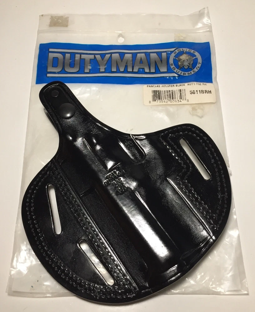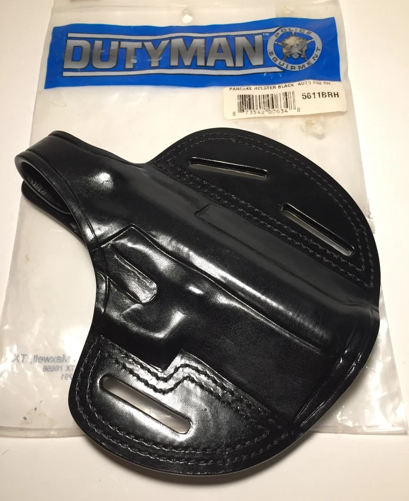 Dutyman Pancake Pistol Holster Black Leather Auto B92 RH 5611BRH. Please feel free to ask any questions. The item will ship out safely and securely the same or next business day.