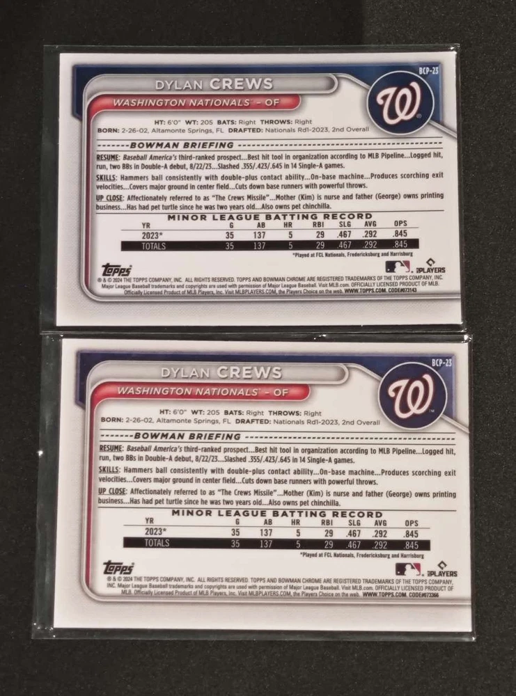 Dylan Crews 2024 Bowman Chrome Mojo Refractor & Base Nationals #BCP-25 Lots2 HD