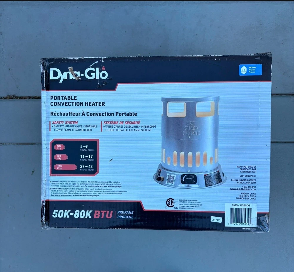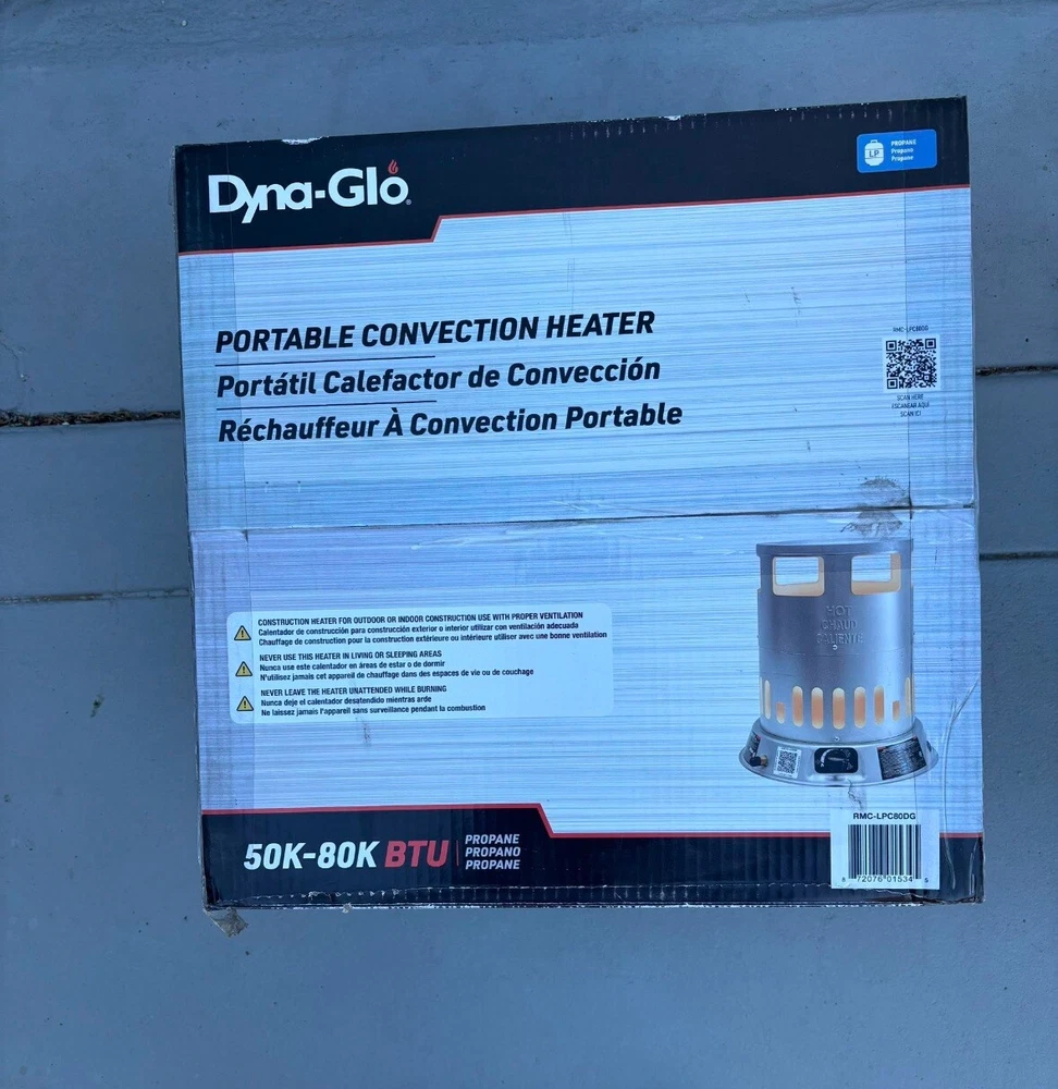 Item Length: 15.91 UPC: 725264071442 Heating System: Convection Material: Propane Item Height: 18.50 gtin13: 725264071442 MPN: RMC-LPC80DG Power Source: Propane Size: 80,000 BTUs Product: Propane Space Heaters Type: Propane Space Heaters Model: Dyna-Glo RMC-LPC80DG Voltage: 12 V Item Width: 15.91 Color: Silver Brand: Dyna-Glo