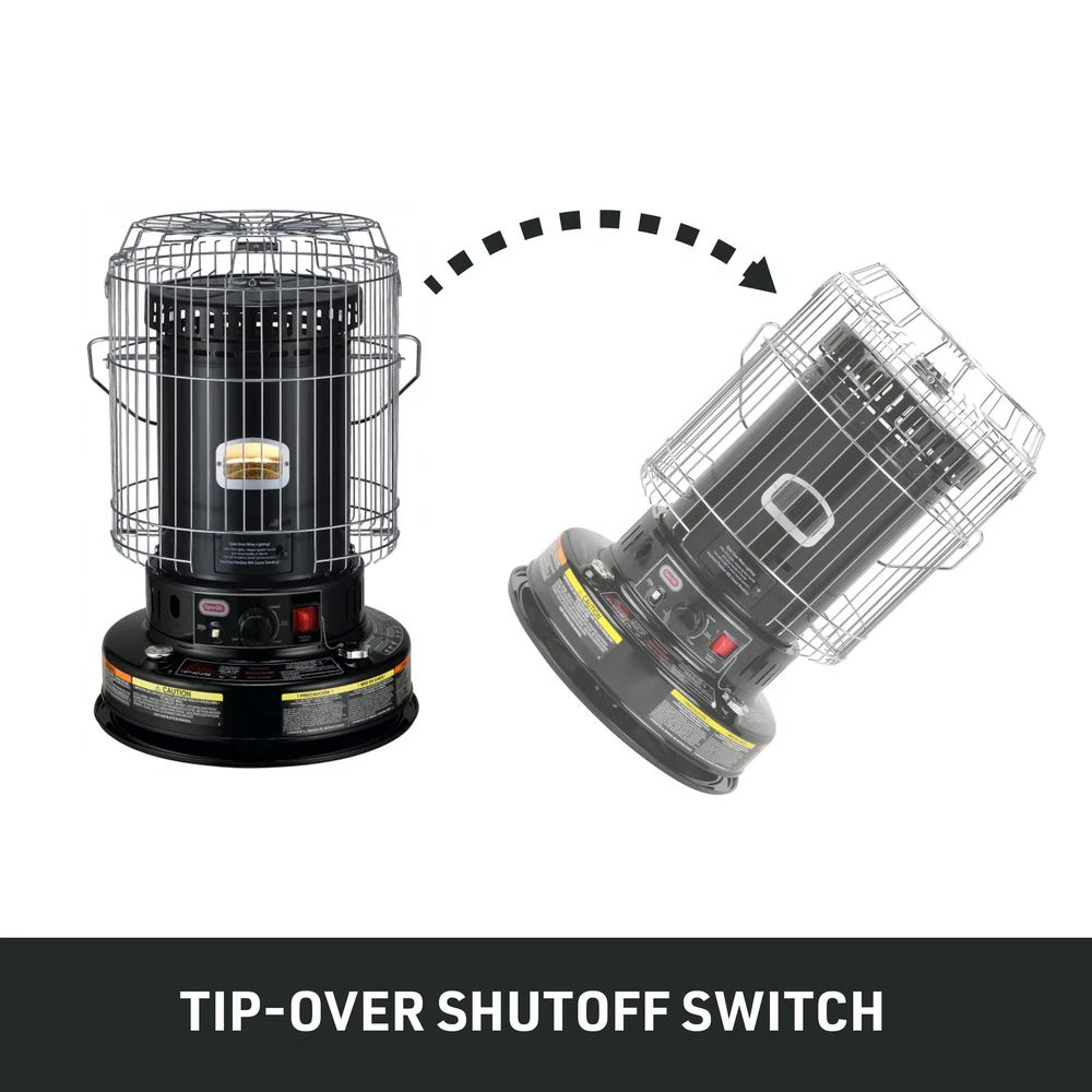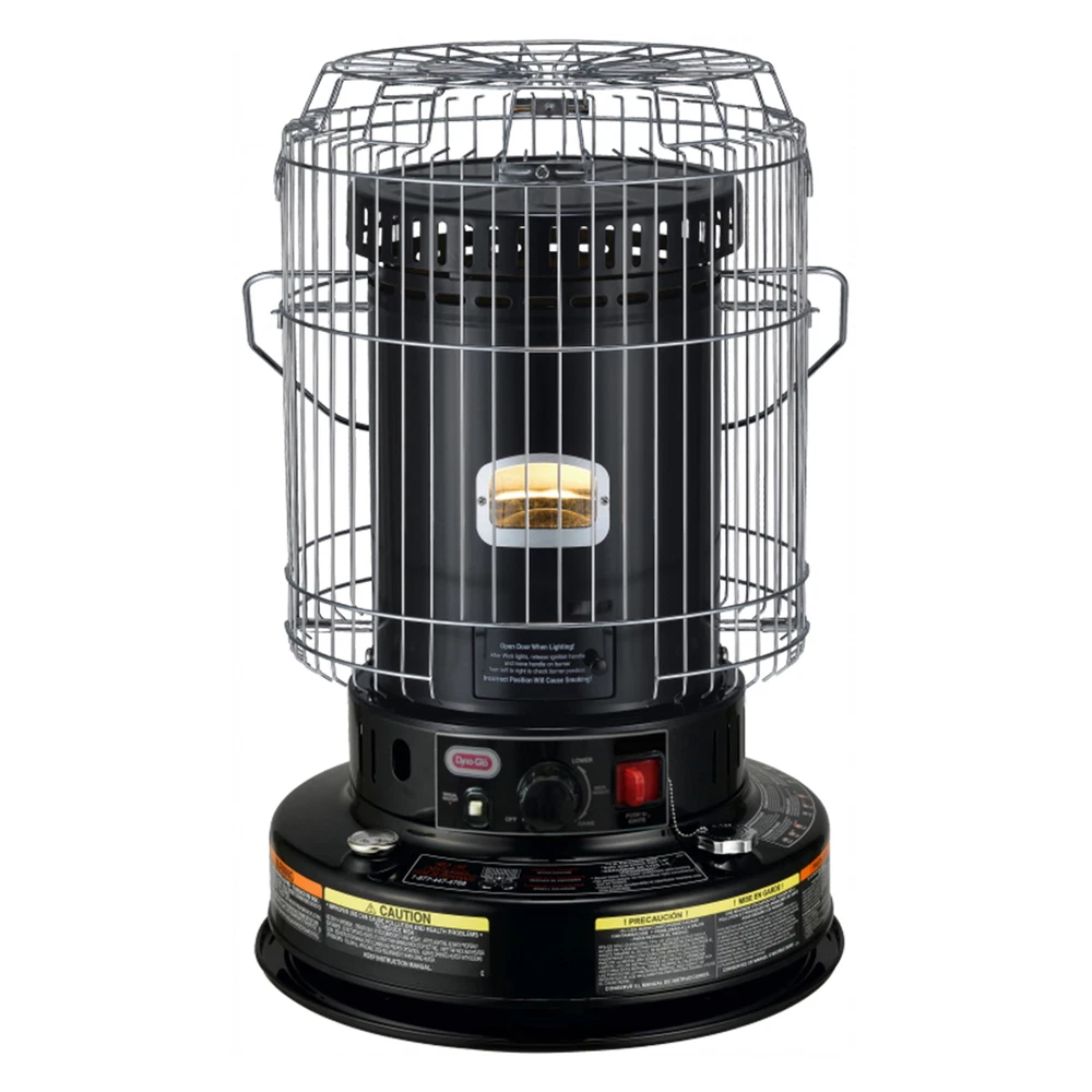The Dyna-Glo Indoor Kerosene Convection Heater is a great choice for safe supplemental indoor heating. Perfect for use in your home, basement, garage, or cabin. Because it does not use electricity, it makes a great choice for emergency heating when the power goes out, as well as everyday zone heating. Uses only 1-K kerosene. Burns with 99.9% efficiency, providing 8-12 hour run times per each 1.9-gallon tank of fuel. Automatic side ignition with simple one-touch extinguish feature. Fuel tank is easy to lift out and has an easy-to-read fuel gauge. Safety grille, cool-top design and tip-over shutoff help reduce accidents. Includes siphon pump and batteries. Dependable - Ideal for emergency use or daily use Economical - Cut heating bills by warming only occupied areas Convenient - Easy to use automatic ignition and one-touch shut-off Safe - Built-in safety switch shuts power off if unit is knocked over Versatile - Use in workshops, basements, cottages, RVs, and more Extended Comfort - Operates 8 to 12 hours on one full tank of kerosene 23,800 BTU/hour Heats up to 1,000 Sq. Ft. No electricity needed! Save on utility bills! Operates 8 to 12 hours on one full tank of kerosene Dependable - Ideal for emergency use or daily use Convenient - Easy to use automatic ignition and one-touch shut-off
