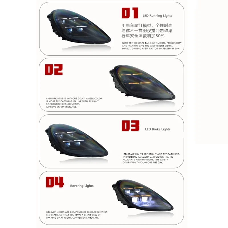 Dynamic LED Headlights DRL For Boxster Cayman 981 2014-2016 Head Lamp Assembly Product Description Attention: Because the same model car may be differently produced in different country. Please ensure the part of your car like our picture shows, or it will not fit, if any differences, please contact with us before purchase, thanks! Integrated Lightings: Day Running Light - white High/Low Beam - white Technical Details: Suitable for: Boxster Cayman 981 2014-2016 Reminder: Plug, adaptor photos & VIN numbers are required before delivery / Professional installation is recommeded Lens Material: PC Housing Material: ABS, PMMA Lighting Technology : LEDs Voltage: 12V Lens Color: clear (as in photos) Install: Professional installation is recommeded Other Features: Plug&Play, Waterproof Content of Delivery: 1 Pair, L+R Shipping Policy Returns Policy Customer Service Feedback Shipping Policy 1. Usually the items (Except for real carbon fiber customized products)will be sent out to your Ebay Address within 1-5 business days after receive your cleared payment.Orders made on Sundays, and holidays will be processed on the next business day and will be shipped within 24 hours. 2. Please allow 7-15 business days for US/UK/AU/Canada/Japan/South Korea deliveries and 15-35 business days for international deliveries. Some shipments may take longer subject to your local customs authorities. 3. International Buyers – Please Note: - Import duties, taxes and charges are not included in the item price or shipping charges. These charges are on the buyer responsibility. - Please check with your country customs office to determine what these additional costs will be prior to bidding/buying. Returns Policy 1. We understand that sometimes an item may not turn out to be just what you need. Refund or replacement request is available within 2 weeks after parcel received & in original condition and packing. 2. Please contact us before returning items and we will provide the shipping address. DO NOT send without communication. Customer Service We open Monday to Saturday. 1. If you have any questions on our products, please contact us at any time. We answer every message within 24 hour period. 2. If you have any problems with your purchase, please contact us by eBay message and let us resolve the problem before leaving us a negative feedback. Our customer service representative is here to ensure that you are satisfied with our services. Feedback 1. Feedback is important to all of us participating on the eBay community. We are always working hard for maintain high standards of excellence and strive for 100% customer satisfaction. So yourPOSITIVE FEEDBACK is very important. 2. Here is an illustration showing how to leave the positive feedback, please follow the following step. Thank you so much. And welcome back to our store again. Copyright © 2023 Dianxiaomi