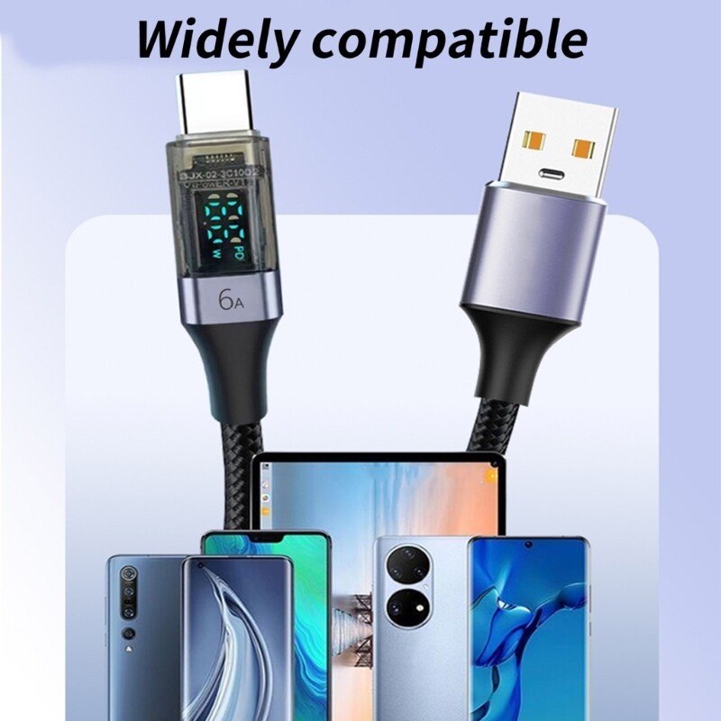 1. This USB-C cable is a game-changer! The dynamic power display keeps me informed of charging speeds, while the 66W/6A fast charging powers up my devices in no time. The sturdy nylon and metal build feels premium and durable—perfect for daily use. It’s survived my rough handling and still works flawlessly. Whether at home, work, or traveling, this cable keeps my gadgets powered efficiently. A must-have for anyone who relies on fast, reliable charging!