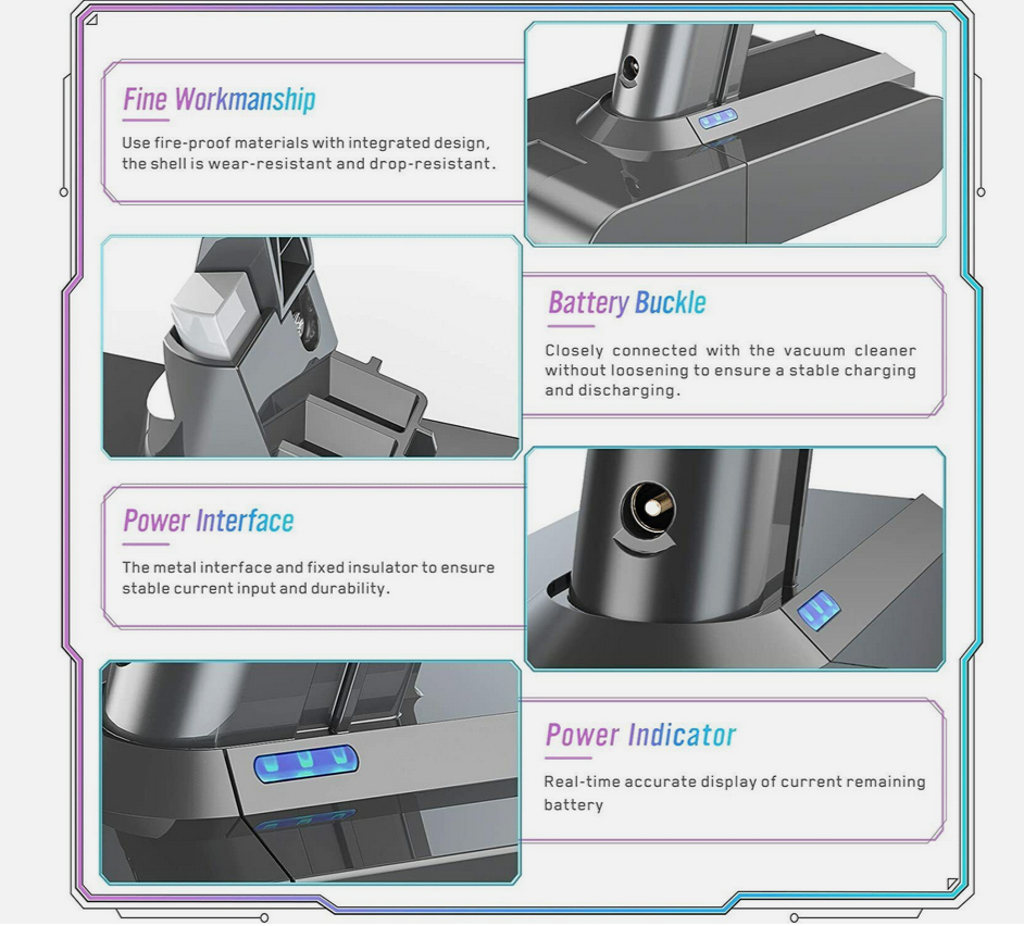 Number of Items in Set:1gtin13:0000096783405Brand:DysonType:BatteryCompatible Brand:For DysonPower Source:Electric CordlessUPC:0000096783405Set Includes:BatteryCompatible Model:For Dyson Animal, For Dyson V8 AbsoluteMPN:967834-05Model:Dyson 967834-05Number in Pack:1Features:Easy CleanColor:Gray