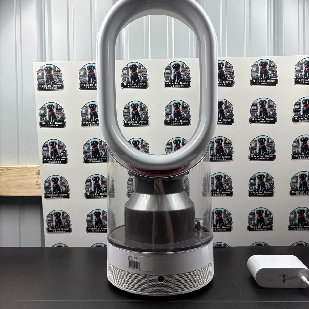 This Dyson AM10 humidifier fan works perfectly—tested and ready to go! The white and silver design looks sleek, and it comes with the power adapter. No remote, but the controls are easy to use. Great condition and does an amazing job keeping the air fresh and comfortable. Highly recommend!