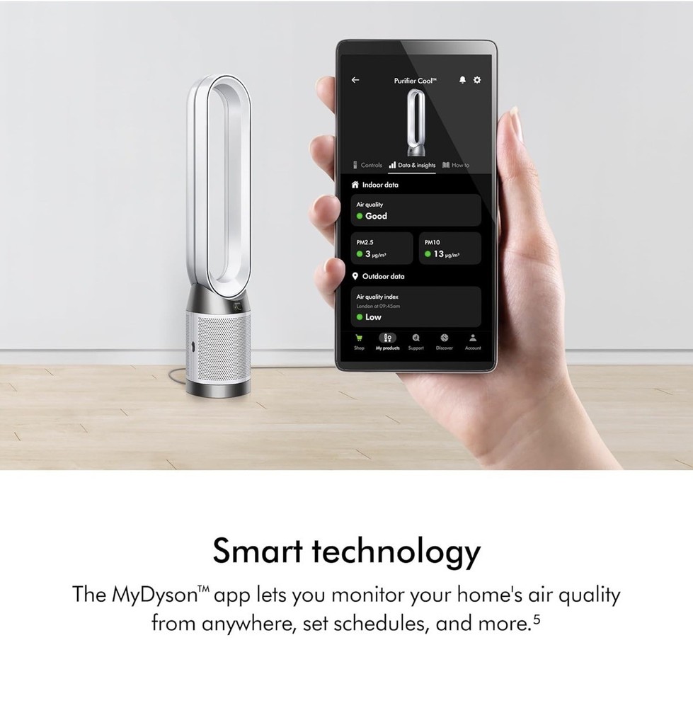 The Dyson Air Purifier Cool PC1 White 518970-01 is a high-quality purifier that effectively filters out impurities and allergens from the air. With its HEPA H13 grade filtration and smart home purification capabilities, it captures 99.97% of airborne particles as small as 0.3 microns. The machine has a sleek design with dimensions of 41.34x8.03x4.72 inches and comes with a remote control for easy operation. The combination of glass HEPA and activated carbon filter provides clean and fresh air for a healthier environment. With 10 different speeds and a voltage of 120, this Dyson purifier is a reliable and efficient choice for keeping your space clean and pure.