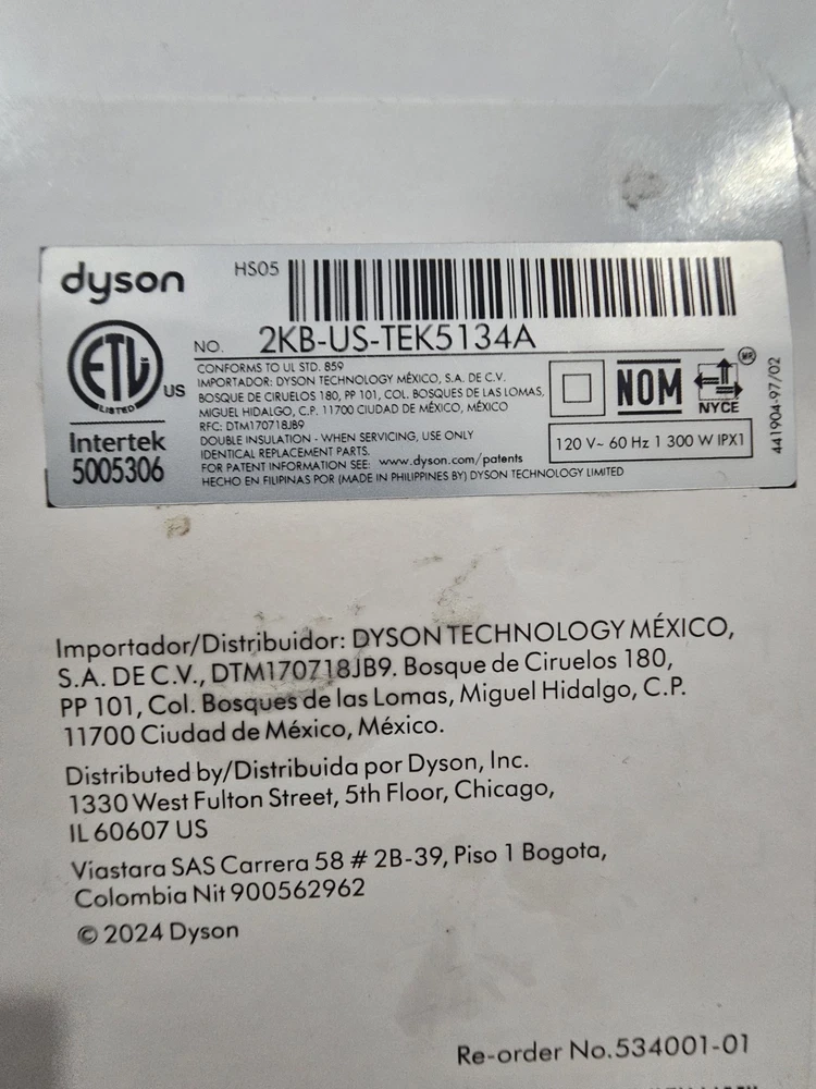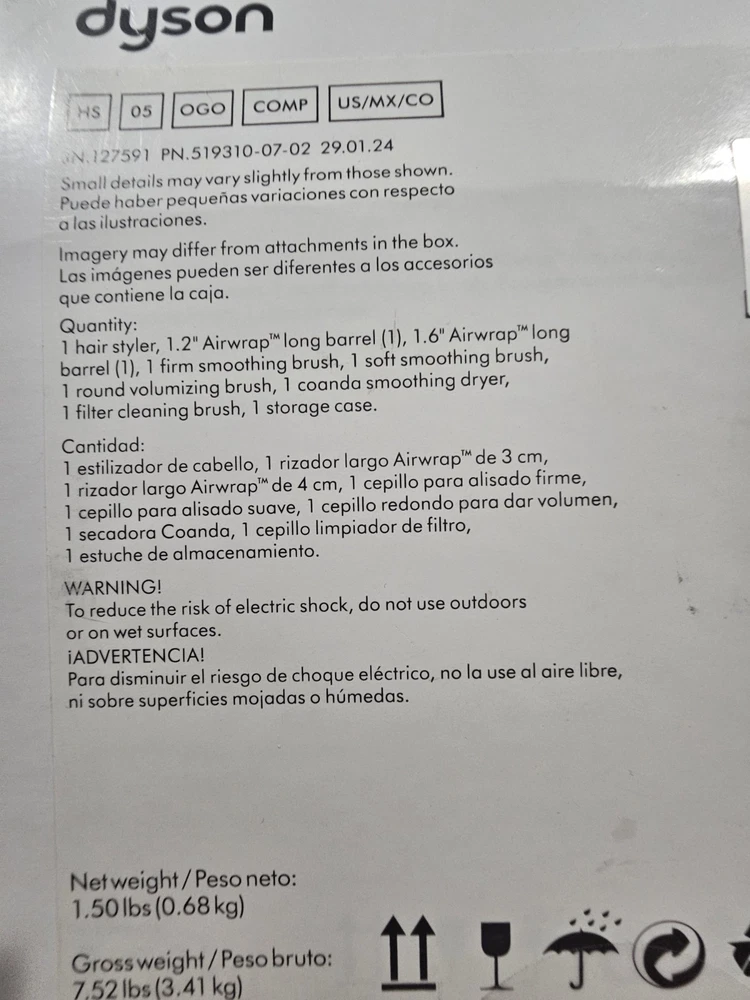 Heating Plate Material: Ceramic & Tourmaline Features: Attachments Included Size: Travel Size Number of Temperature Settings: 3 Power: 1300 W Type: Multi Styler Hair Type: All Hair Types, Long Hair MPN: HS05 Barrel Size: 1.25 in Brand: Dyson Power Source: Electric Color: Black Model: Dyson Airwrap
