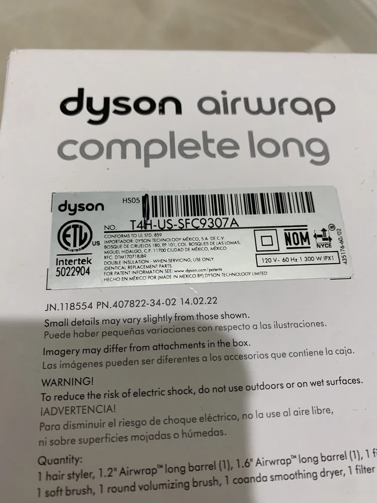 Dyson Airwrap Multi-styler Complete Long (Silver | NIckel). Dyson Airwrap Complete Styler Set Includes Airwrap styler 1.2" Airwrap barrels 1.6" Airwrap barrels Firm smoothing brush Soft smoothing brush Round volumizing brush Pre-styling dryer Storage case Non-slip mat Filter cleaning brush