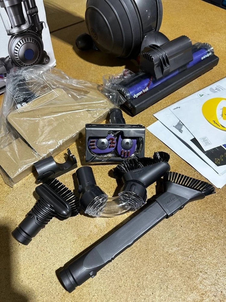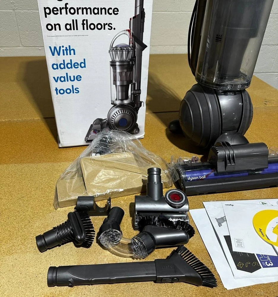 🌀 Dyson Ball Animal Pro Upright Vacuum High-Performance Pet & Multi-Surface Cleaner 📝 Description The Dyson Ball Animal Pro Upright Vacuum delivers powerful, consistent suction designed for homes with pets and high-traffic floors. Featuring Dyson’s Ball™ technology, this vacuum provides smooth steering and easy maneuverability around furniture and tight spaces. Its self-adjusting cleaner head automatically seals suction across carpets and hard floors, while advanced filtration helps capture allergens and fine dust. With a versatile set of attachments included, the Animal Pro is built to handle deep carpet cleaning, stairs, upholstery, and above-floor areas with ease. ⭐ Features 💨 Unrivaled Dyson Suction – Strong, consistent airflow for deep cleaning 🔄 Self-Adjusting Cleaner Head – Automatically adapts between carpets and hard floors 🟢 Dyson Ball™ Technology – Easy steering and smooth maneuverability 🐾 Pet Hair Performance – Designed for homes with pets and shedding 🌬️ Advanced Filtration – Helps capture allergens and fine particles 🧰 Versatile Tool Set – Cleans floors, stairs, upholstery, and hard-to-reach areas 🪜 Instant-Release Wand – Quickly converts to above-floor cleaning 📊 Specifications Brand: Dyson Model: Ball Animal Pro Type: Upright Vacuum Cleaner Floor Types: Carpet, area rugs, hardwood, tile, laminate Steering: Ball™ Technology Filtration: Advanced whole-machine filtration Corded: Yes Color: Silver / Red 📦 What’s Included Dyson Ball Animal Pro Upright Vacuum (Main Unit) Self-Adjusting Cleaner Head Tangle-Free Turbine Tool Multi-Angle Brush Flat-Out Floor Tool Carbon Fiber Soft Dusting Brush Stiff Bristle Brush Stair Tool Combination Tool 📌 Condition Open Box – Excellent Item is in excellent condition with minor signs of short-term use. May show small cosmetic imperfections that do not affect performance. Fully tested and in proper working order. Comes in the original retail box. All accessories are included except the tool bag. 💬 Buy With Confidence If you have any questions, feel free to message — we respond quickly and always take care of our buyers.