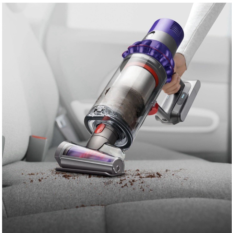 The Dyson Cyclone V10 cordless vacuum cleaner is engineered with the power, versatility and run time to deep clean homes with pets. Dyson’s de-tangling Motorbar™ cleaner head deep cleans carpets and hard floors with hair removal vanes that clear long hair and pet hair from the brush bar. The innovative Hair screw tool with a conical brush bar is perfect for cleaning upholstery and pet beds. The Dyson Cyclone V10 has advanced, whole-machine filtration that captures pet allergens and fine dust, expelling cleaner air. Its versatile cordless format transforms into a handheld vacuum with one click so you can clean up high, down low and everywhere in-between with 3 cleaning modes for the right power where you need it. Comes with a 6-month warranty and lifetime Dyson support. ¹Actual run time will vary based on power mode and/or attachments used. In the box: Docking Station, Motorbar Cleaner Head, Hair Screw Tool, Combination Tool, Mini Soft Dusting Brush, Crevice Tool, Low Reach Adaptor. Motorbar™ cleaner head technology uses polycarbonate hair removal vanes to automatically clear the brush bar as you clean. Picks up long hair and pet hair. Fast. For upholstery and tight spaces with an anti-tangle conical brush bar. Direct, powerful suction on both carpets and hard floors. Hair de-tangling Motorbar™ clears long hair and pet hair from the brush bar as you clean. Lightweight to clean high-up places with one smooth action. info: We aim to show you accurate product information. Manufacturers, suppliers and others provide what you see here, and we have not verified it.