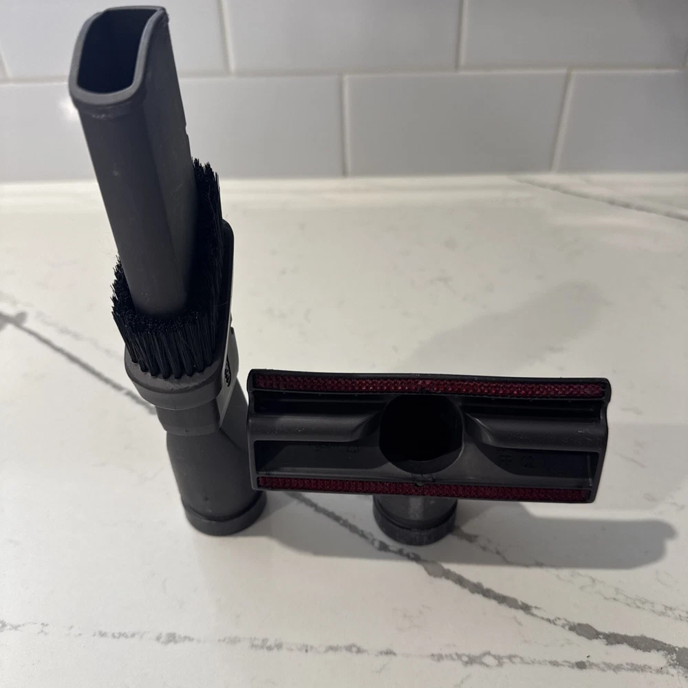 The OEM Dyson DC33 Replacement Parts Attachments include two brush heads and tool attachments designed for use with the Dyson DC33 vacuum model. The set is compatible with Dyson DC07, Dyson DC14, and Dyson DC33 models, providing users with versatile cleaning options. The gray-colored attachments are electric corded and are essential for maintaining the efficiency of the vacuum cleaner in keeping households clean and tidy. Please refer to photos for full condition