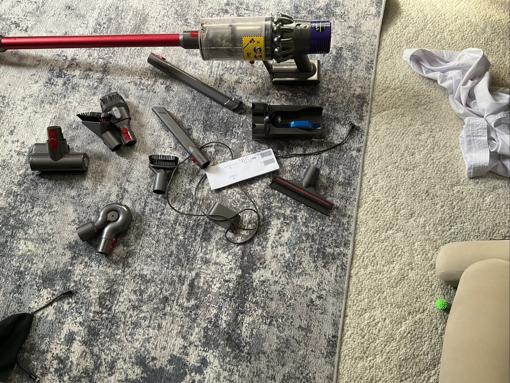 Comes with all accessories barely used works perfectly, only used twice, no other parts have been used except the one on the vacuum
