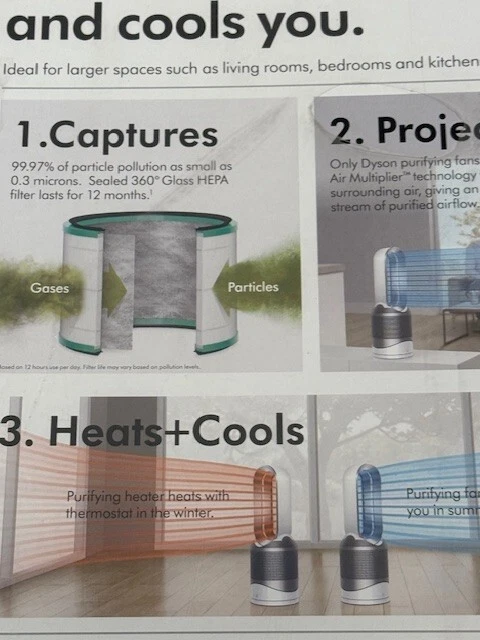 Material: Stainless Steel Voltage: 120 V Item Height: 24.9 Color: White Filtration Technology: HEPA-Type gtin13: 0723548548406 Brand: Dyson UPC: 0723548548406 Model: Dyson Pure Hot+Cool Link Control Style: Remote Control, Digital Type: Tower Item Width: 6.1 in Power Source: Electrical MPN: 311383-01 Features: Fan Function Contaminants Captured: Chemicals