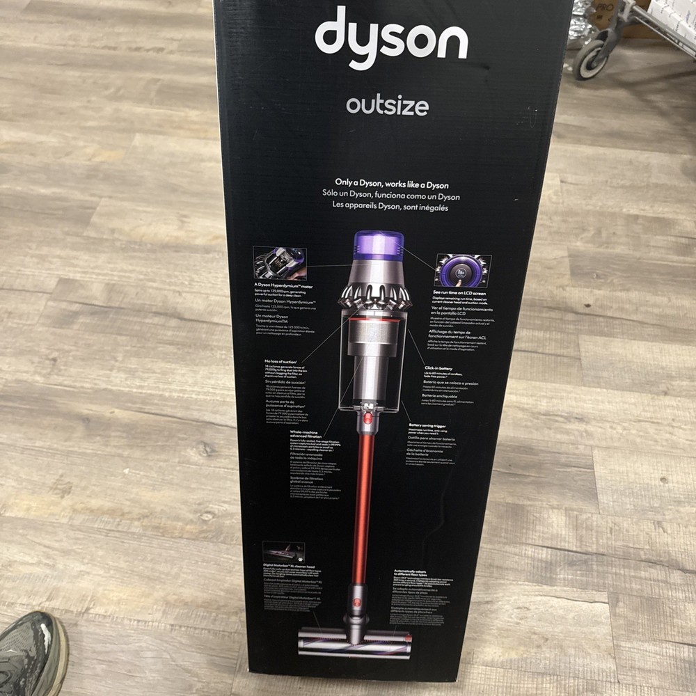 The Dyson Outsize Stick Vacuum Cleaner is a high-performance cordless vacuum that offers up to 60 minutes of runtime with a relatively short charge time of 270 minutes. Designed specifically for pet hair removal and carpet cleaning, this model features a bagless design and weighs 7.85 lbs, making it easy to maneuver around furniture and stairs. With its multi-surface capabilities and powerful suction, the Dyson Outsize is a reliable choice for maintaining a clean and healthy home.