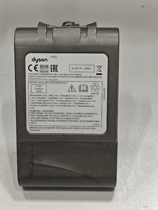 Dyson SV03 Vacuum Battery - Used, Minimal Defects, No Box This Dyson SV03 Vacuum Battery is a reliable replacement part designed to restore your vacuum's optimal performance. With a power output of 21.6V and 350W, it ensures consistent suction and efficient cleaning. Ideal for those seeking a cost-effective solution, this battery is compatible with various Dyson models, making it a versatile addition to your household cleaning tools. Despite showing minimal defects and slight scratches, the battery remains in full working condition, ensuring long-lasting power for your cleaning needs. It comes without the original packaging, offering a practical purchase for those prioritizing functionality over aesthetics. Enhance your vacuum's efficiency and enjoy uninterrupted cleaning sessions with this dependable battery. All items will usually be shipped within 3 business days of receiving cleared payment (excludes weekends and holidays). If you have some questions, feel free to ask and if you are not satisfied with your purchase before opening a case on Ebay, please contact us and we will try to resolve your issues as quickly as possible. Multiple items on one of the listings? If you see that we have multiple quantities of the same item in a photo, please note that it is representative of what you will receive. There may be slight variations in condition between the pictured item and the one you receive. For example, the scratches and dents may differ. Return Notes: 1. For items listed as "working" condition: Returns due to "changed mind," "doesn't fit," or other buyer’s remorse reasons are accepted, but the buyer is responsible for return shipping costs. 2. For items received damaged or not as described: If the item arrives damaged or does not match the listing description, we will cover the return shipping costs. Supporting photos or video evidence must be provided before the return is approved. Please contact us immediately with the details and your order number to resolve the issue efficiently. 3. For items listed as "For parts or not working": Returns are not accepted, as these items are explicitly described as non-functional or for repair purposes only. Buyers acknowledge this condition at the time of purchase. 4. General return guidelines: Items must be returned in the same condition as received, including all original packaging and accessories (if applicable). Returns must be initiated through the eBay Returns Center and include a valid return reason. For corporate or small business customers: If you require an invoice for your purchase, please specify this in the buyer's notes section or reach out to us.