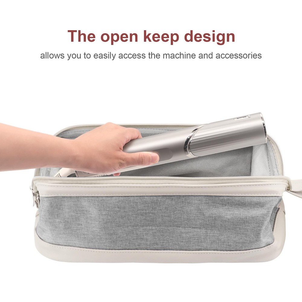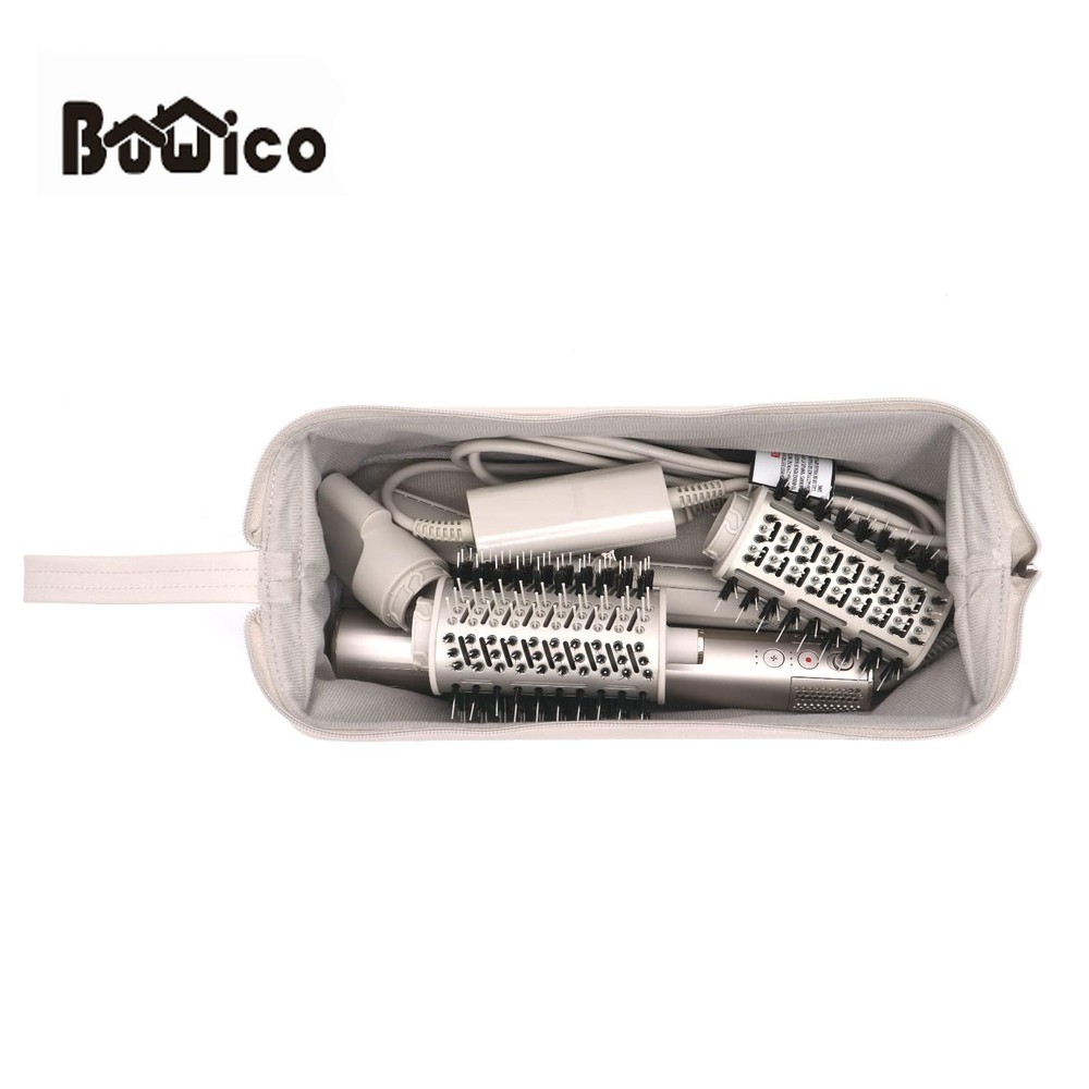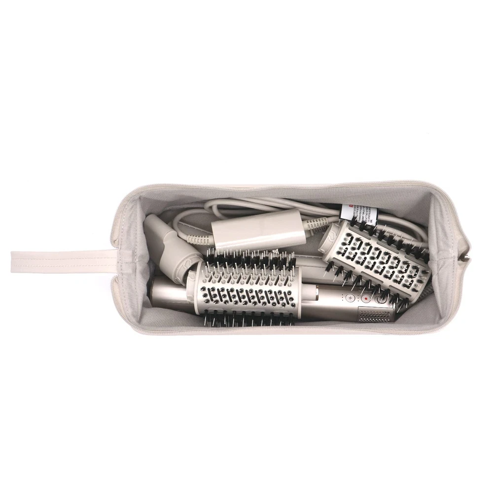 Multi-function bag, wide range of application.It is suitable for dyson airwrap styler/ dyson hair dryer HD01/dyson hair dryer HD03/dyson hair straightener/shark flexstyle/shark hair dryer/laifen hair dryer,. It can also be used as a cosmetic organizer case Made of high quality cloth and PU leather material , it is anti-scratch ,dustproof ,waterproof .The inner layer is soft and anti-scratch Spacious storage space, no compartments, the zipper can be opened to both sides to the maximum, easy to take items out and put items in The zipper is durable and smooth .With a carrying strap ,you can carry this case relaxly .bag holds your hairdressing tools and accessories, it is especially suitable for travel and business trips. It is also suitable for home storage, so that they will not clutter on the desktop Product size : 15.3*4.9*6.7 in. Weight : 290 g. Compact size allow you can put it in your luggage. Its whole shape is a triangle, when you take it out, it can be laid flat on the desktop