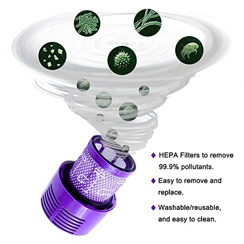 PERFECTLY FIT – Working great as the Original Manufacturer Filter, the Replacement Part V10 Filters compatible with V10 Cyclone series, V10 Absolute, V10 Animal, V10 Total Clean, SV12. Compare to Part # 969082-01. The filter can help your vacuums run at peak again. PREFERENTIAL 2 PACK DESIGN- 2 pcs filters plus with 1 cleaning brush in one set help your always have one filter ready to be used. Just say goodbye to the days of worrying about the lack of additional filters to replace. UPGRADED FILTERING CAPABILITIES – Adopting two-in-one design with high efficiency, our v10 filter help your vacuum run at peak again. QUALITY ABOVE ALL ELSE – Made of latest high-strength materials, the V10 filter is designed to outlast our competitors on the market, truly improving the air quality of your home. EASY TO INSTALL & CLEAN – Free your hands from the complicated replacement steps. No extra tools needed. Just hand wash it in warm water and let it completely air dry. To ensure your vacuum works properly and optimally, it is recommend to replace the V10 filter every 3-6 months depending on your usage.