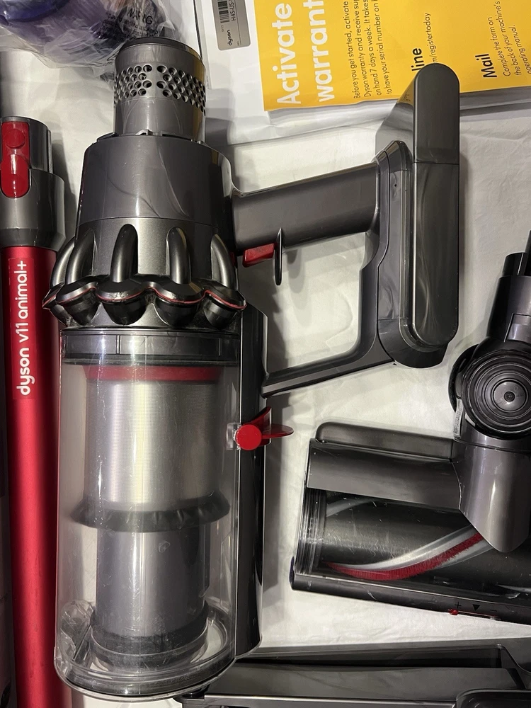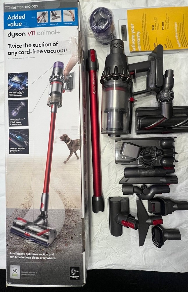 The Dyson V11 Animal+ Cord Free Vacuum is a high-performance vacuum cleaner designed for pet owners. With a runtime of up to 60 minutes and a quick charge time of 1 hour, this red vacuum offers convenience and efficiency. The included accessories like the filter, extension wand, floor brush, charger, and crevice tool ensure that you have everything you need to keep your home clean. The cordless feature, along with its bagless design, make it easy to maneuver and empty. Perfect for removing pet hair from floors and other surfaces, this Dyson V11 model is a must-have for households with furry friends.